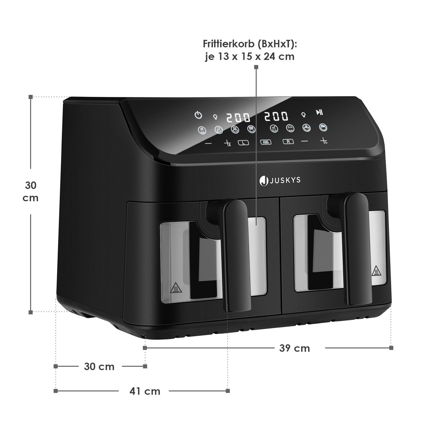 Oplev varmluftfrituregryden med hele 9 liters kapacitet! Takket være de 2 kamre og 9 forskellige programmer er den optimal til alsidig madlavning for hele familien. De to kurve er non-stick-belagte og lette at rengøre. Perfekt til sunde og lækre måltider!
