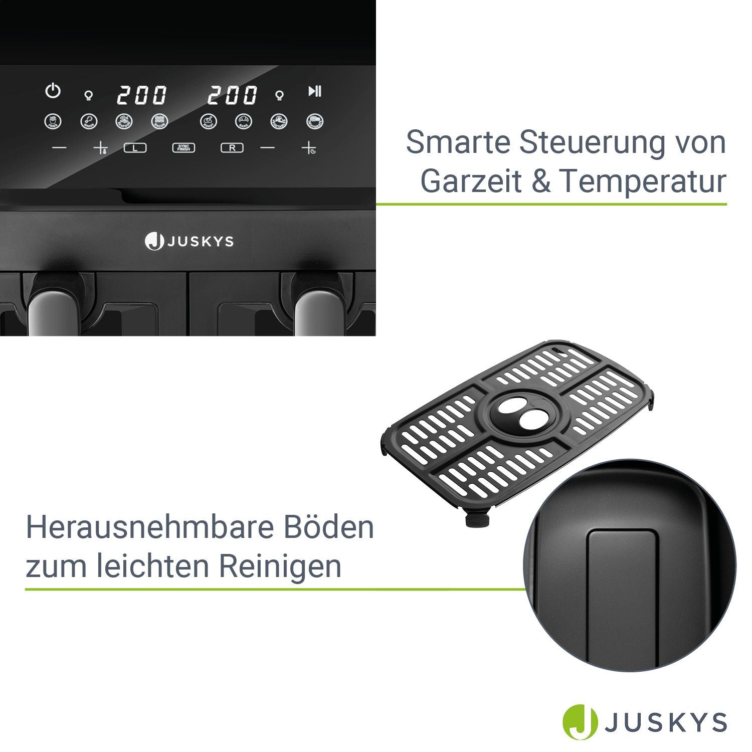 • Perfekt Timing: Oplev optimale tilberedningsresultater for dine retter. Takket være automatisk justering af tilberedningstid og temperatur i begge kurve bliver alle retter klar samtidig.