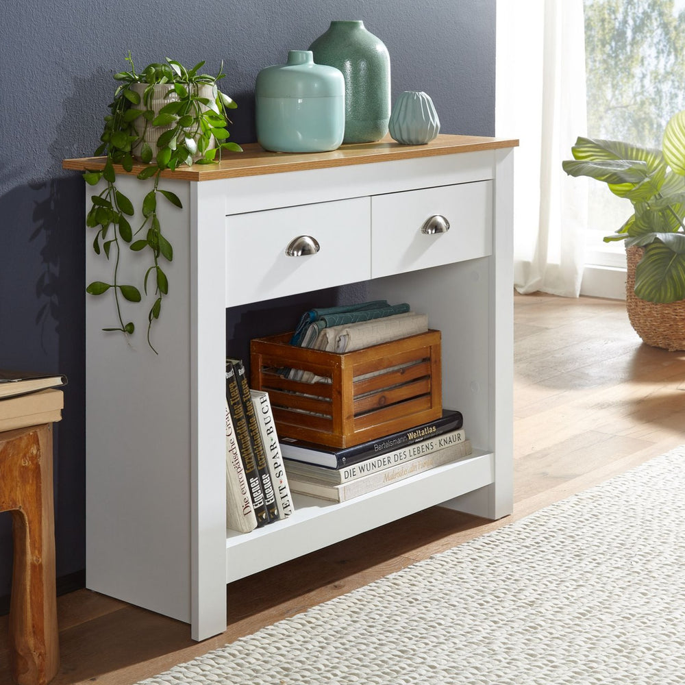 Et konsolbord med skuffer er oplagt til småting, som gerne lige skal gemmes væk og uden at man skal grave sig frem til det igen.