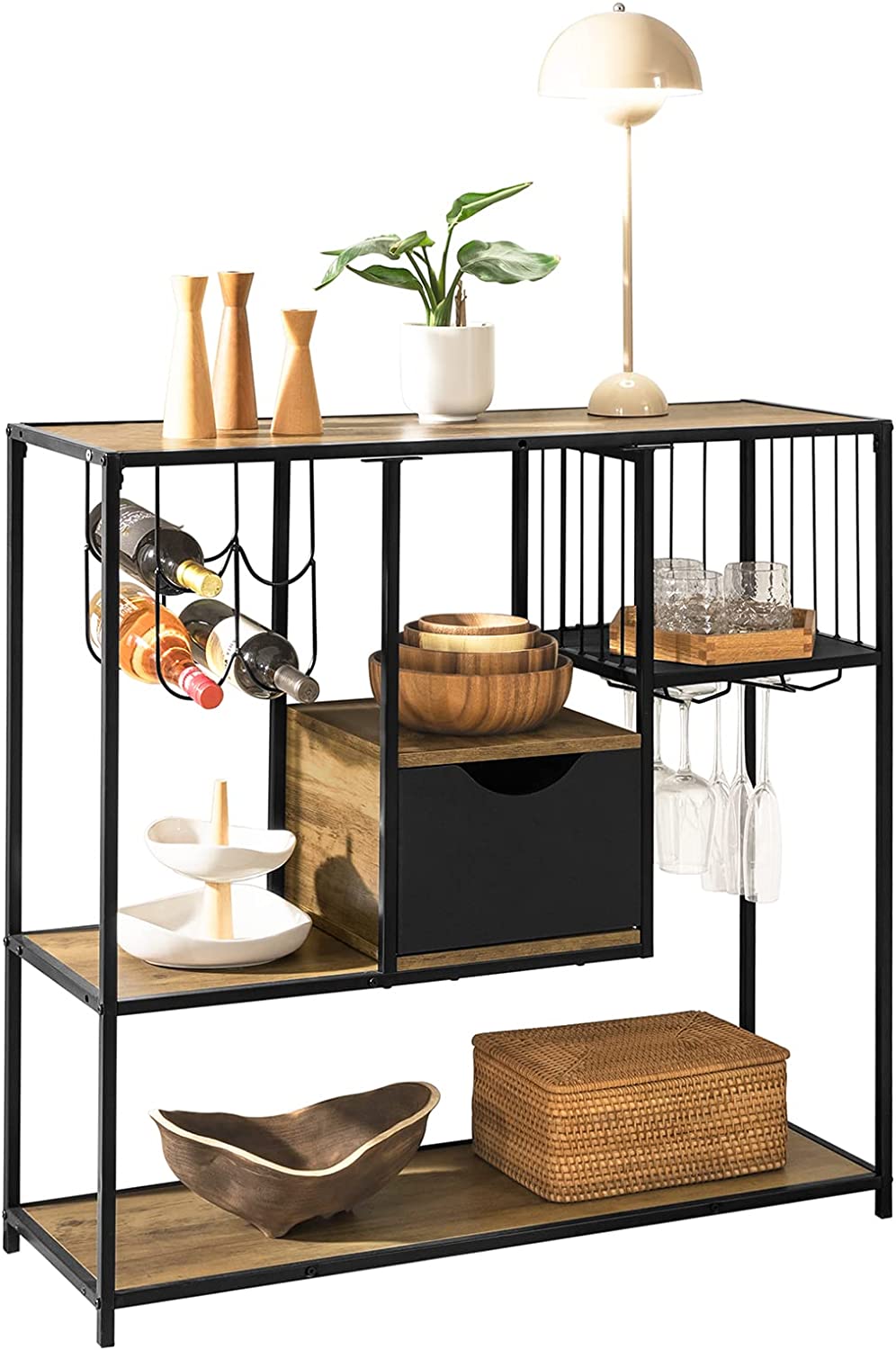 Uanset antal af hylder og placeringen, giver det ofte det resultat at de opbevarede ejendele er synlige. Et konsolbord med hylder er derfor oftest til ting, som du ønsker at have til offentligt skue – modsat konsolborde med enten skuffer eller skab.