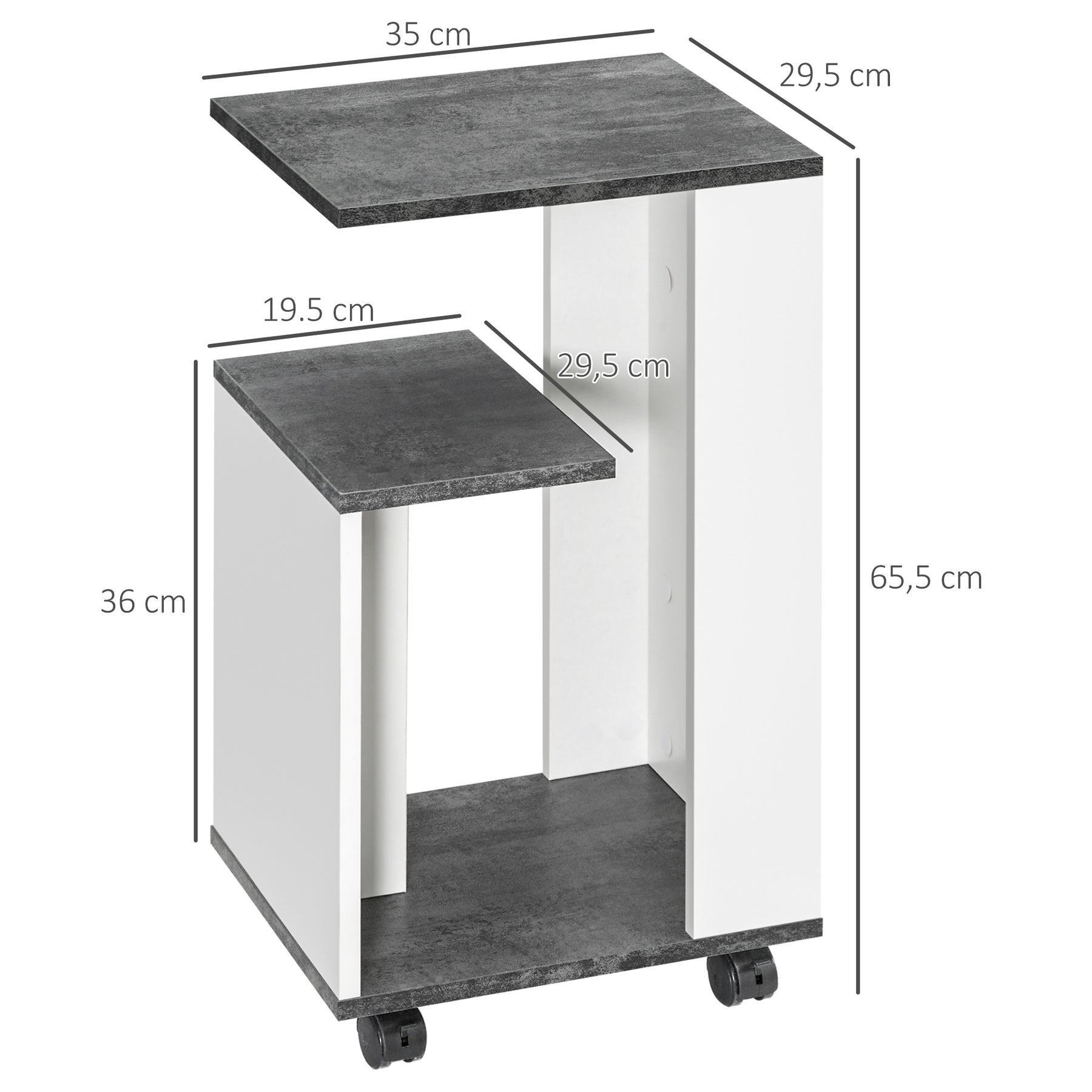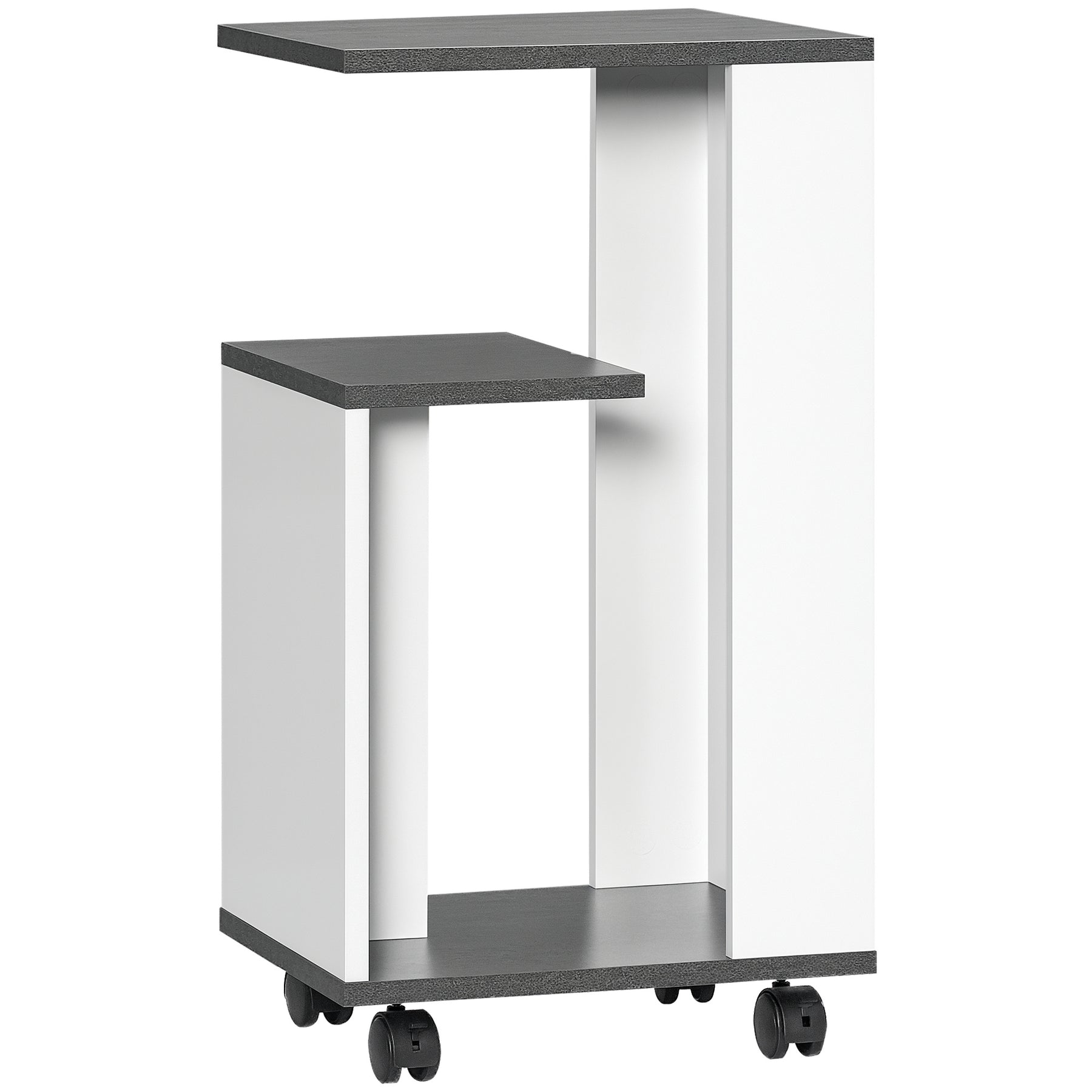 Dets minimalistiske design og elegante hvide og grå toner giver dit rum et unikt udseende. Fire hjul gør det mobilt og nemt at flytte, mens to låsebremser sikrer stabilitet. Et fleksibelt blikfang til dit hjem!