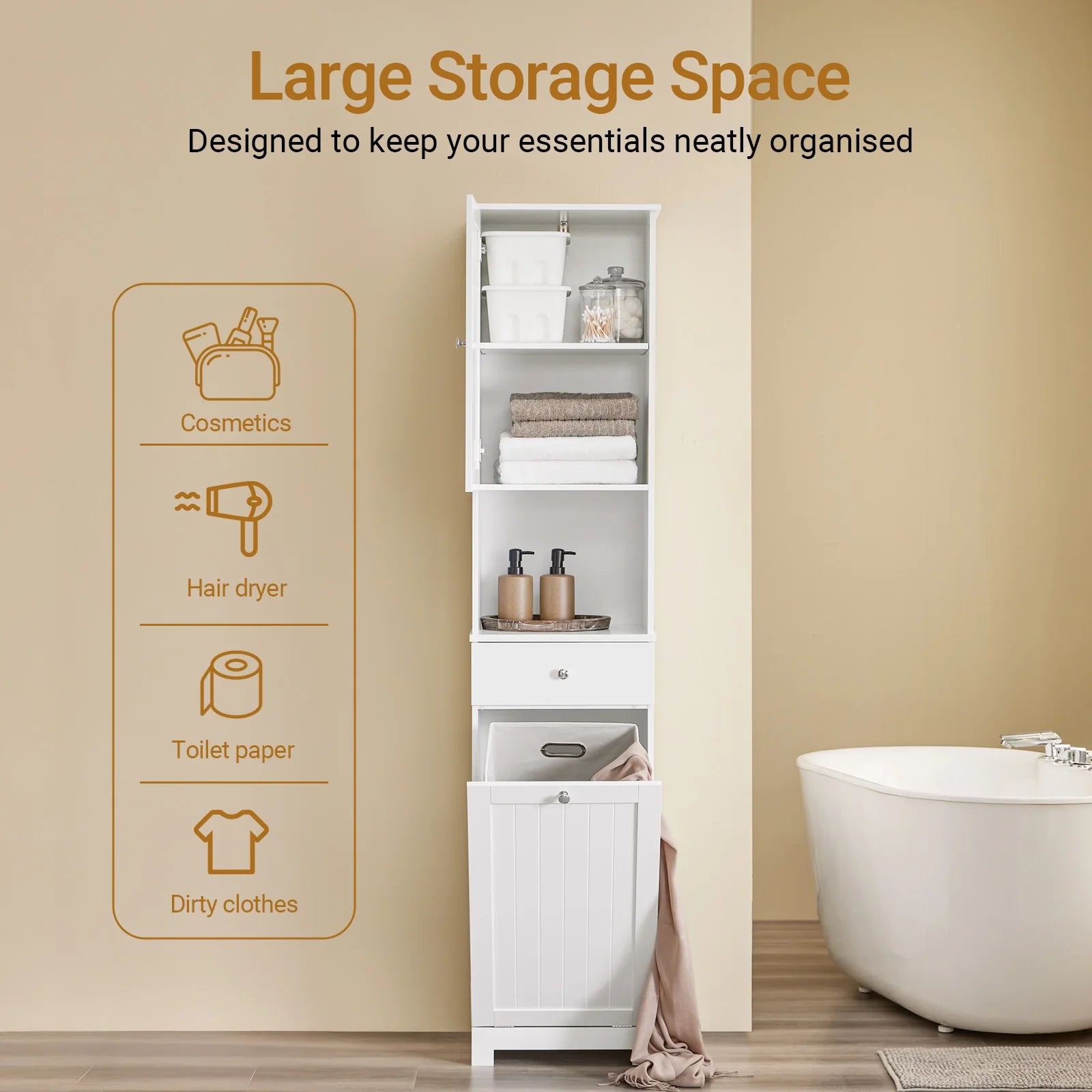 Uanset om det er håndklæder, kosmetik eller snavset vasketøj – alt finder sin plads her.