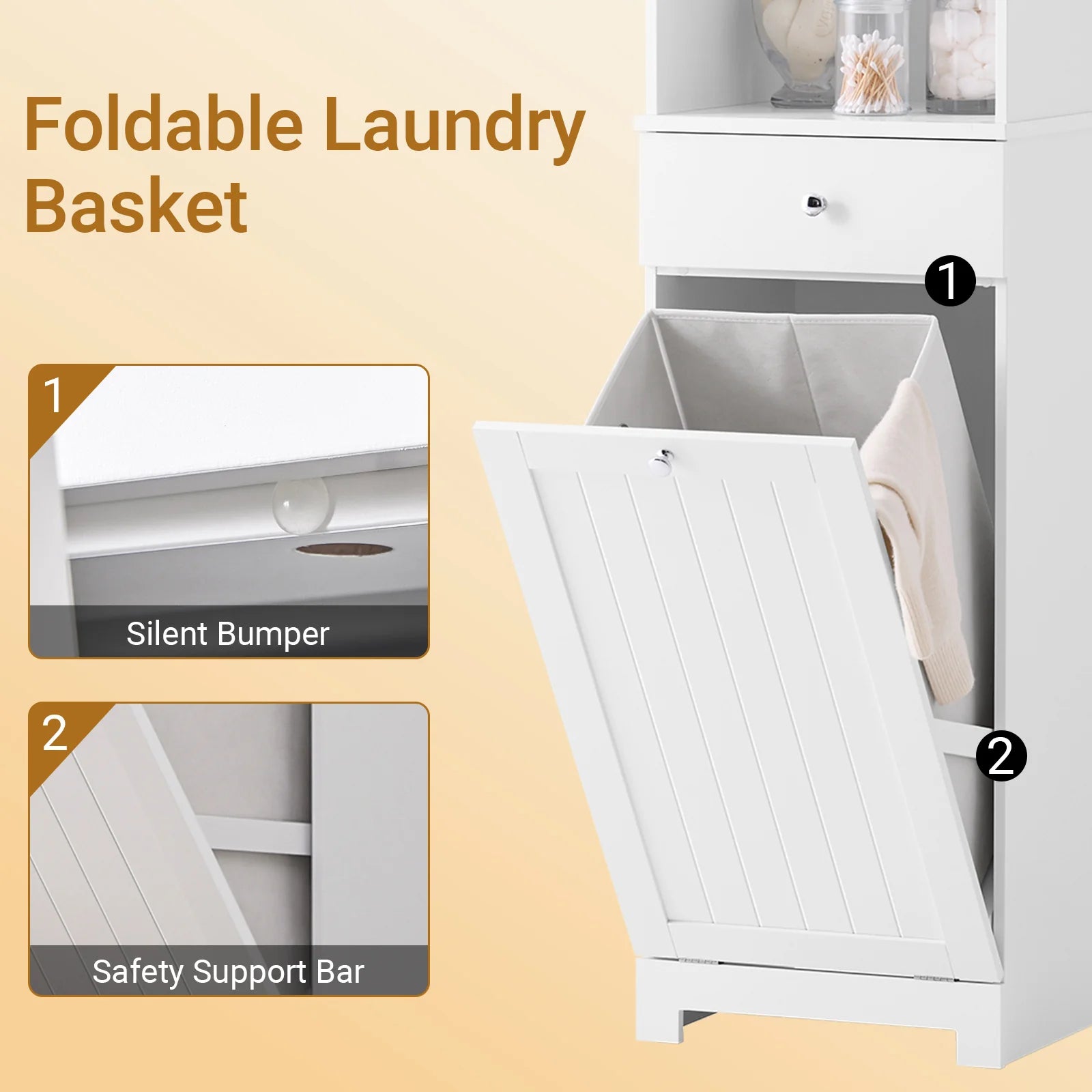 • Vådrumsegnet: Fremstillet af robust E1 MDF & E1-spånplade, suppleret med silikonefødder og antikollisionspuder, forbliver skabet stabilt, lavt støjniveau og er ideelt til fugtige rum.