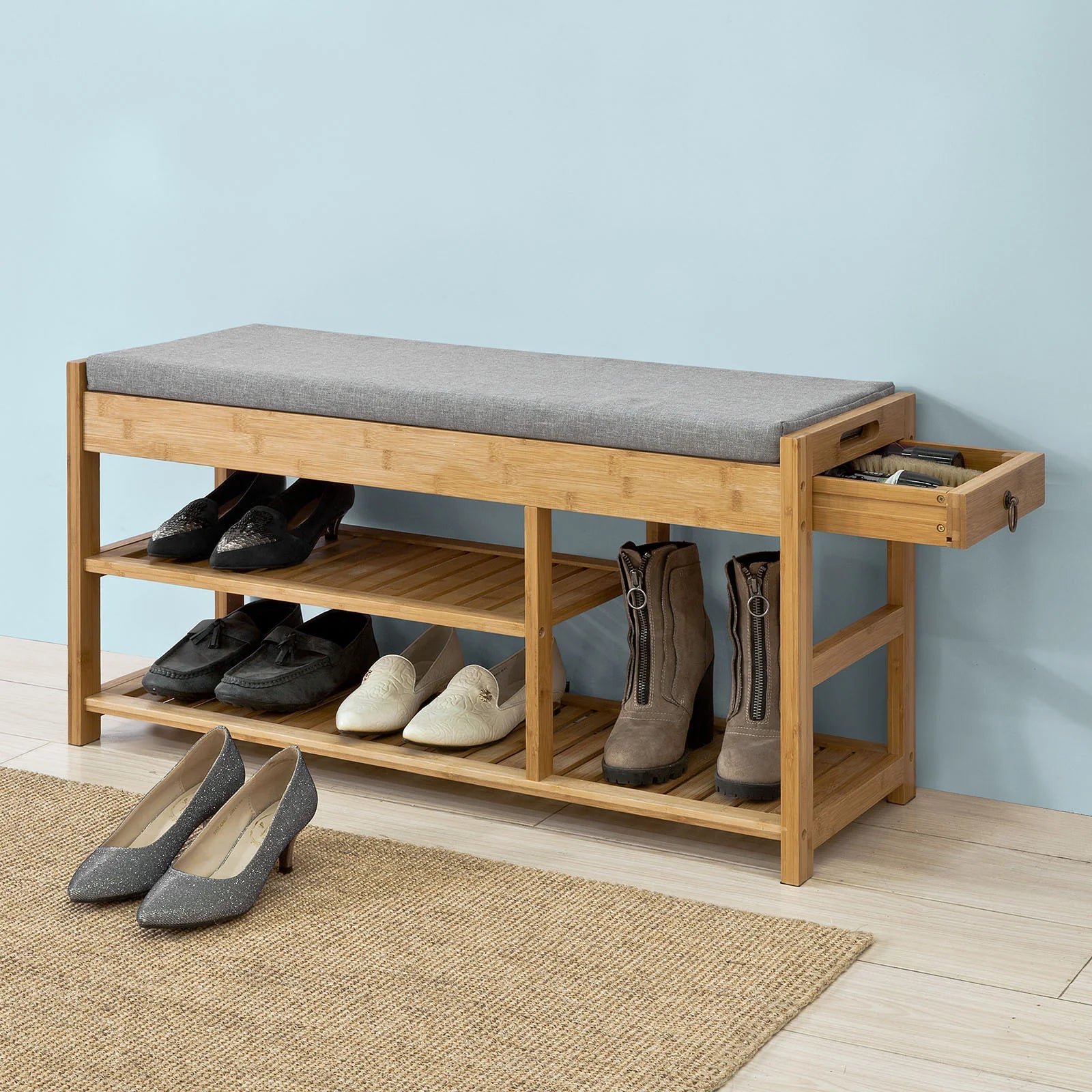 Skobænken er udstyret med to små skuffer i siderne, og sædet kan løftes op, så der er ekstra opbevaringsplads til mindre genstande.