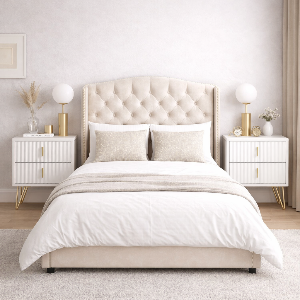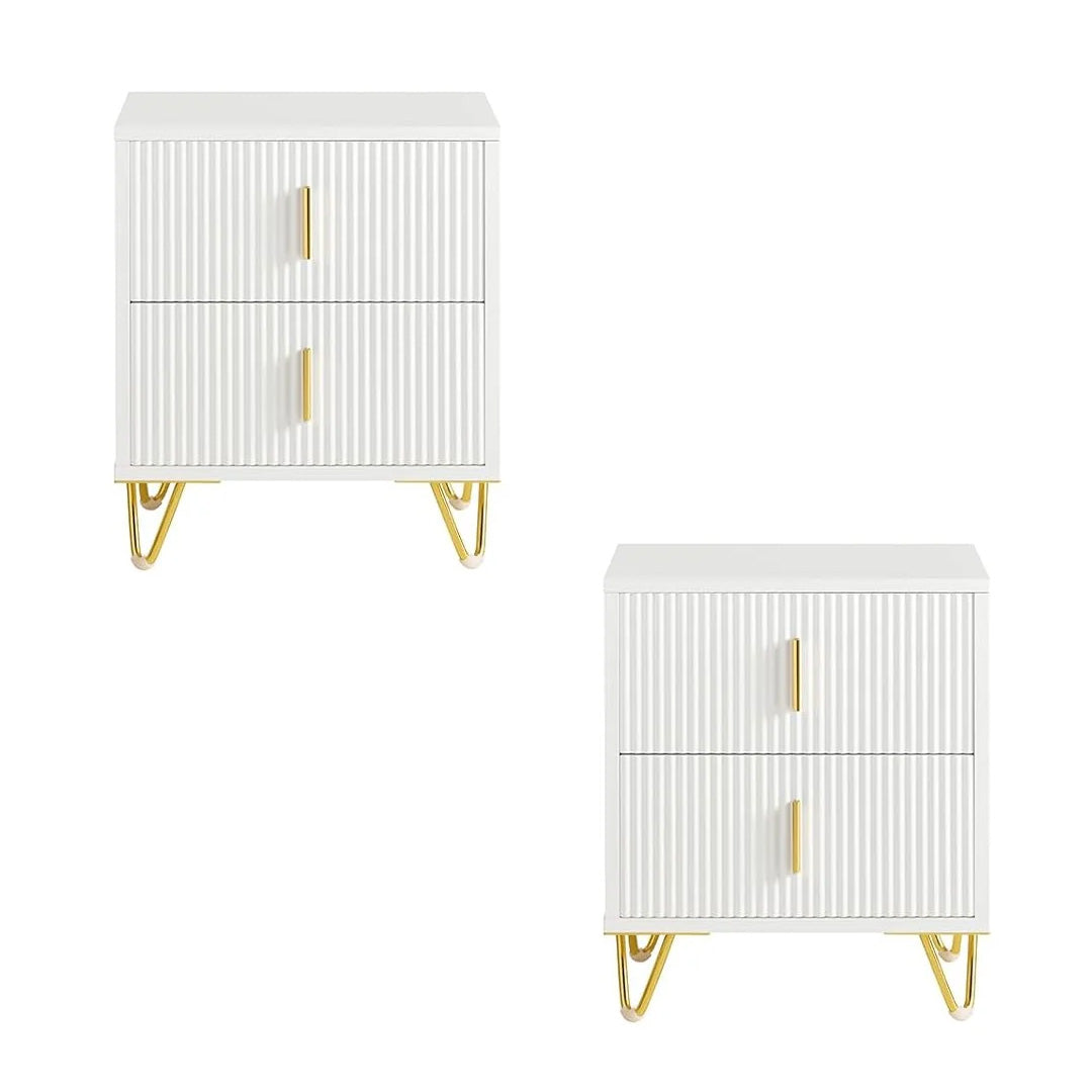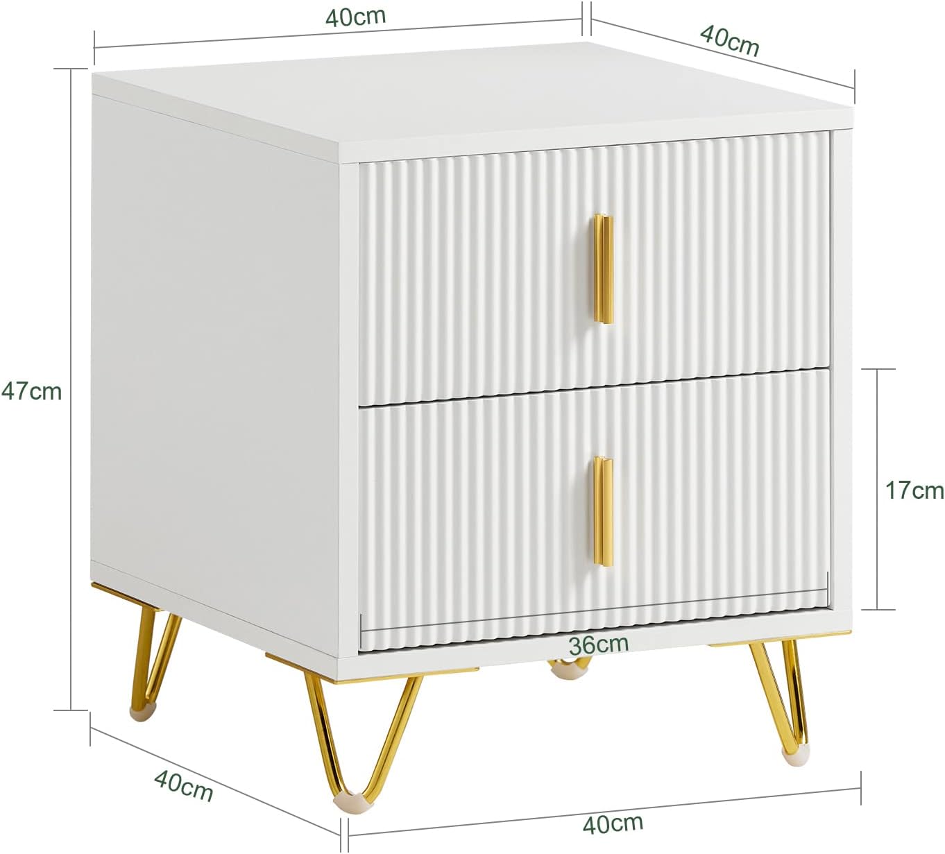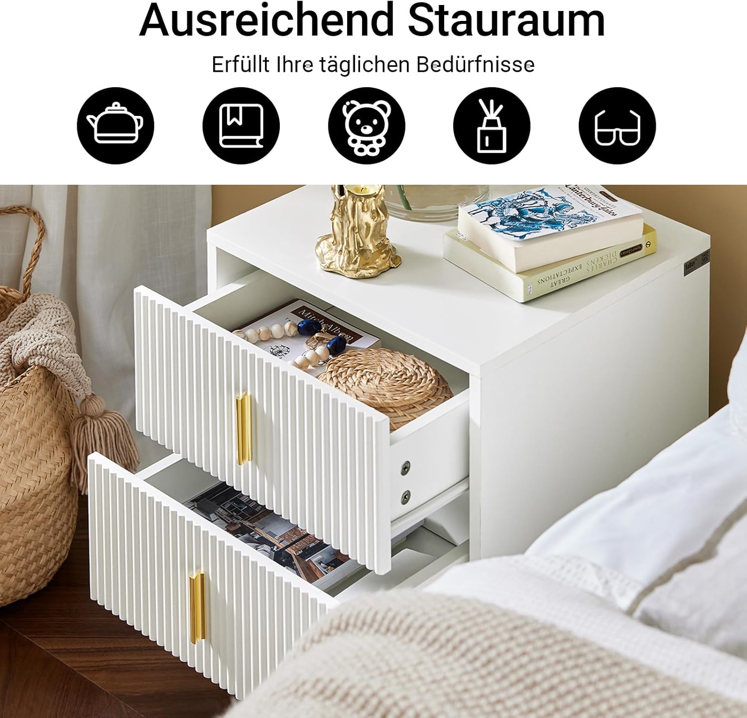 Dette elegante sengebord med to skuffer kombinerer funktionalitet og moderne design og passer perfekt ind i både soveværelse, stue og mindre rum. Med sin kompakte størrelse og stilrene udtryk fungerer det lige så godt som natbord som sidebord eller lille opbevaringsmøbel.
