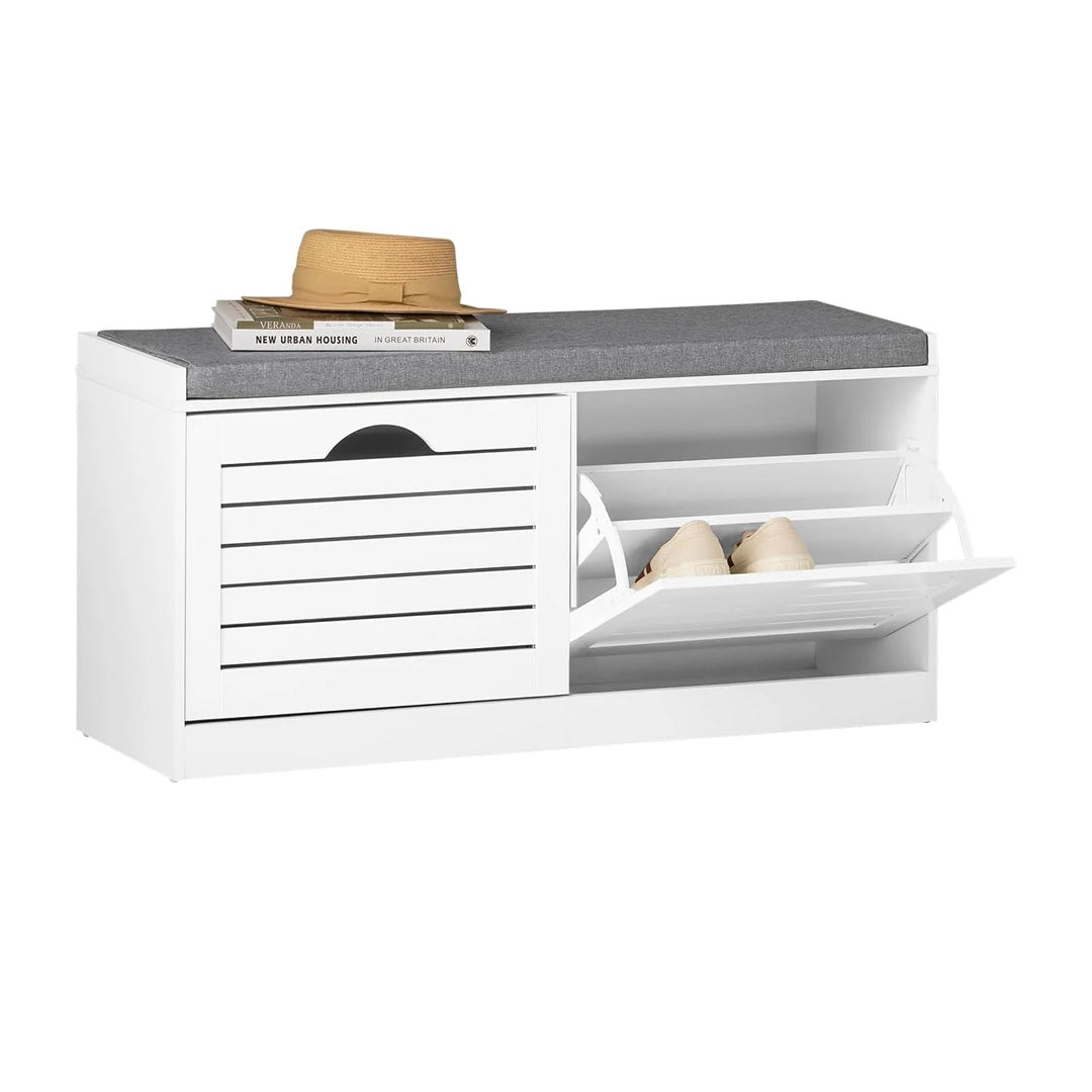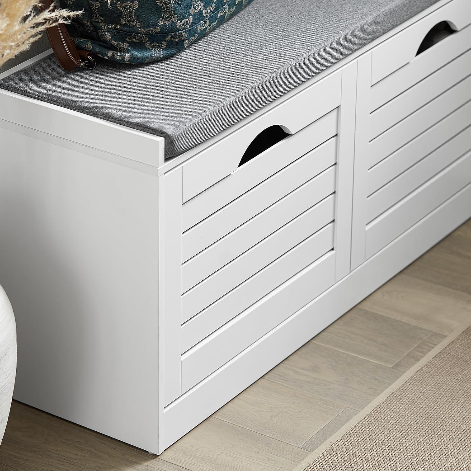 Skobænk med sæde, opbevaringsplads til 8 par sko - ideel til gang, 97x30x47 cm, hvid