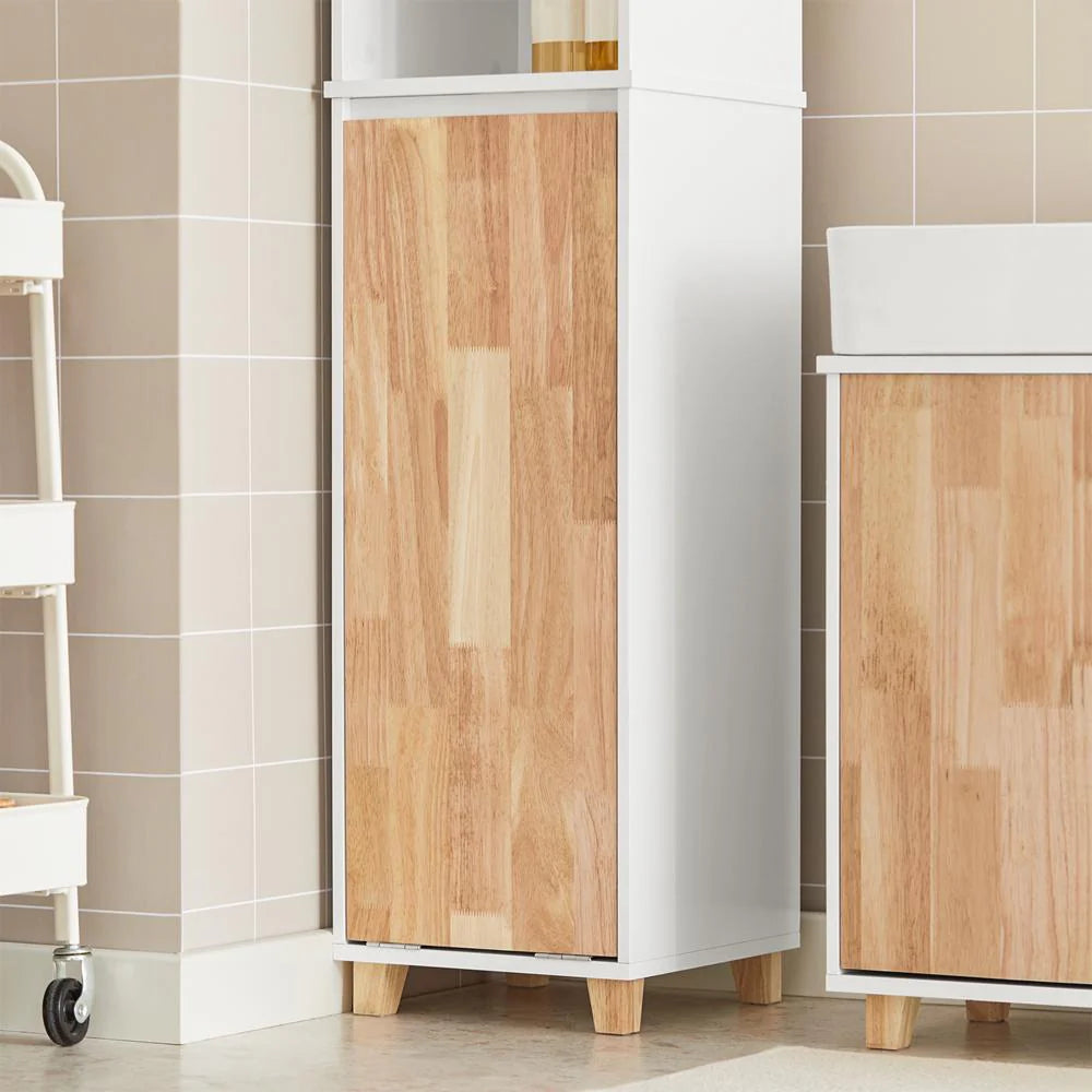 Skabets vertikale design udnytter højden i rummet optimalt, hvilket gør det ideelt til mindre badeværelser, hvor gulvpladsen er trang.