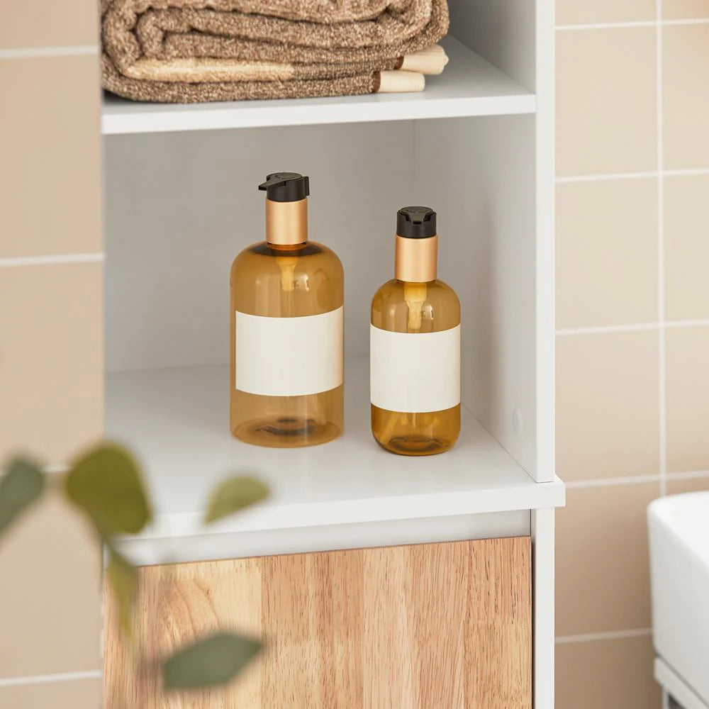 Tip: Udnyt skabets højde til at placere duftpinde eller en lille plante på de øverste hylder for at skabe en ægte wellness-stemning på badeværelset.