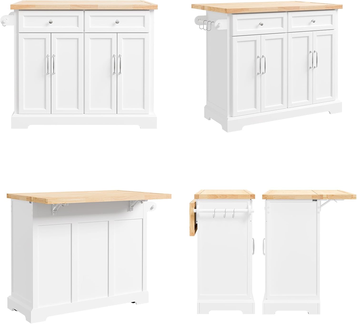 Det unikke ved denne køkkenø er den udvidelige bordplade, der på et øjeblik kan øge din arbejdsflade fra 46 cm til hele 71 cm i dybden. Det er den perfekte løsning til madlavning, servering eller som en hyggelig barplads i det mindre køkken.