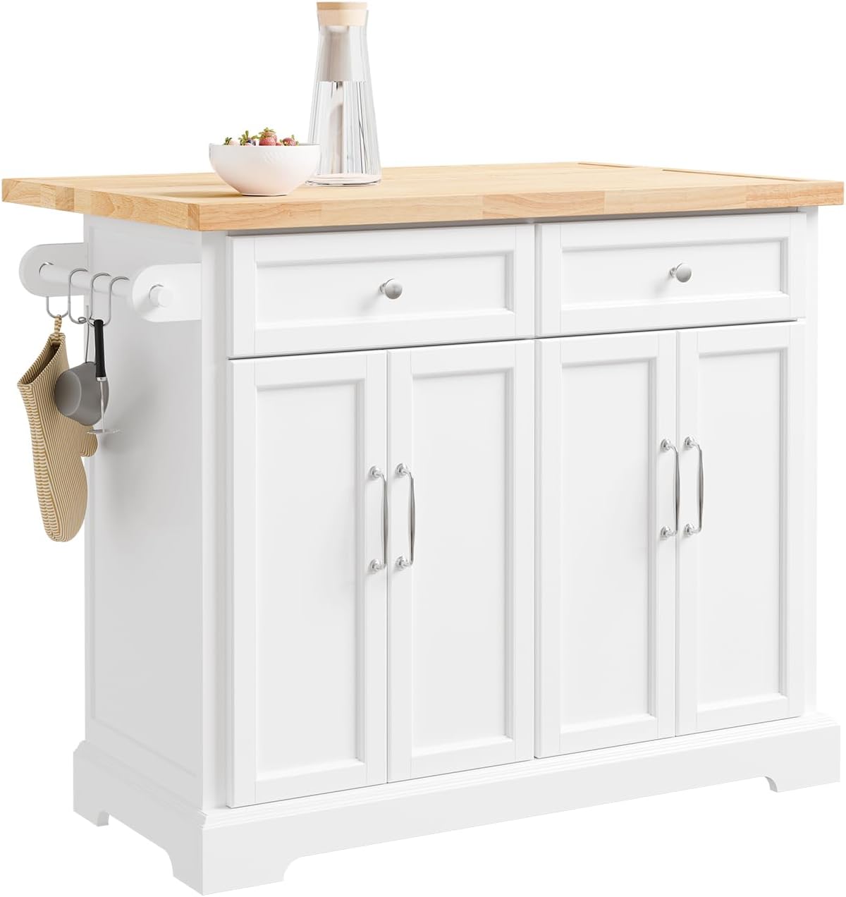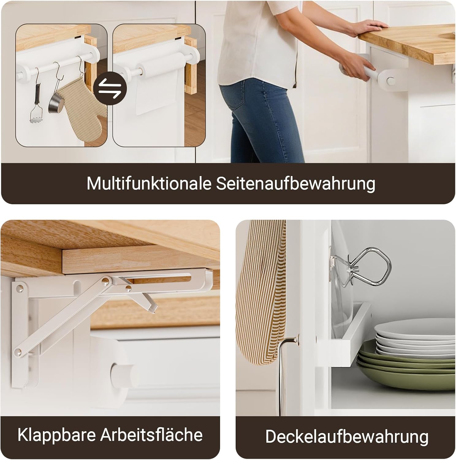 Smarte detaljer: Inkluderer en praktisk håndklædeholder, 3 S-kroge til redskaber og indvendige U-formede stænger i lågerne – ideelt til opbevaring af grydelåg.