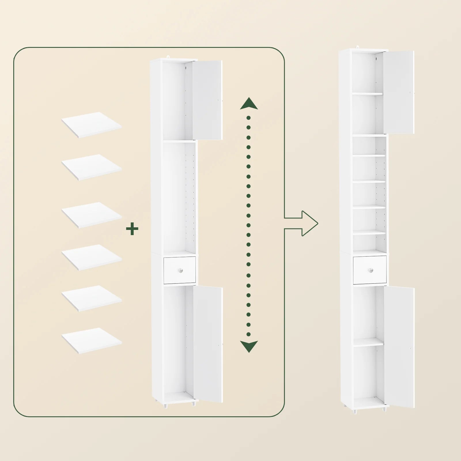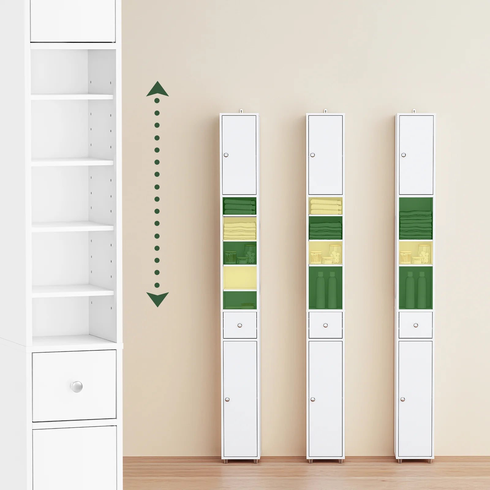 Ultrasmal profil: Med en bredde på kun 20cm er skabet ideelt til små badeværelser, smalle gange, nicher eller ethvert rum, hvor pladsen er trang.