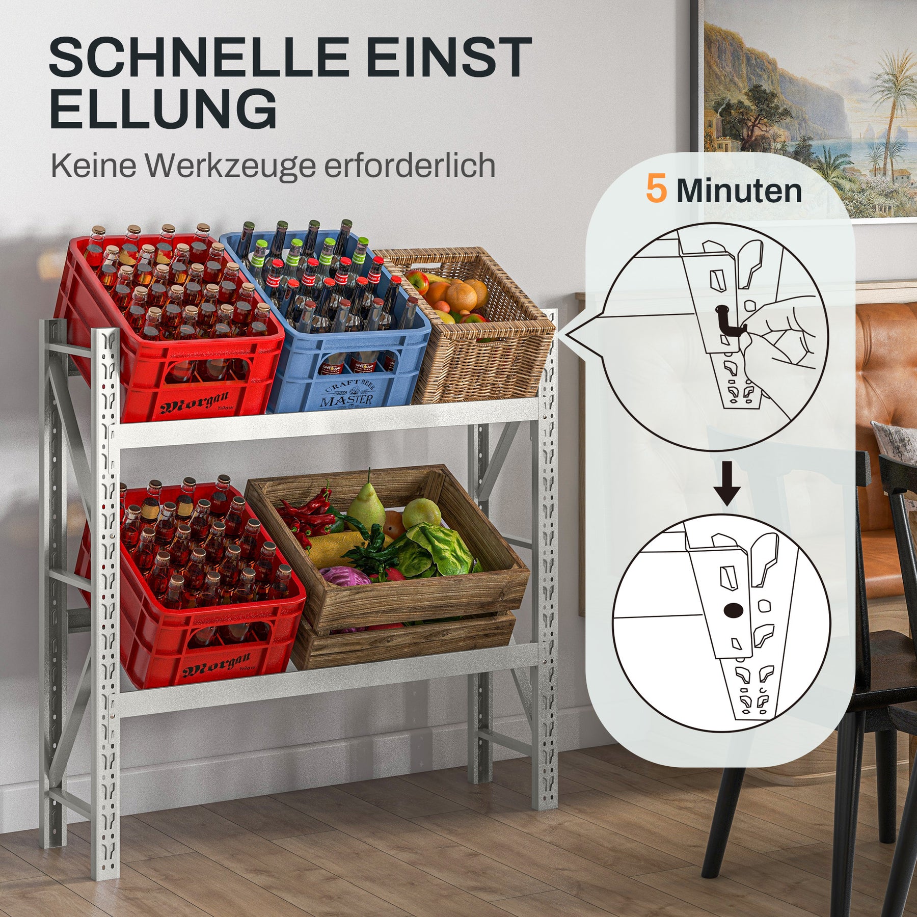 Oplev den enkle organisering med drikkekassestativet! Dette to-lags kassestativ kan rumme op til 6 drikkekasser, hvilket sikrer, at dine drikkevarer altid er inden for rækkevidde uden at du behøver at bøje dig ned. Flyt stativet for at opbevare frugt, grøntsager eller endda vasketøjskurve. En smart og alsidig løsning til at holde dit rum rent og ryddeligt!