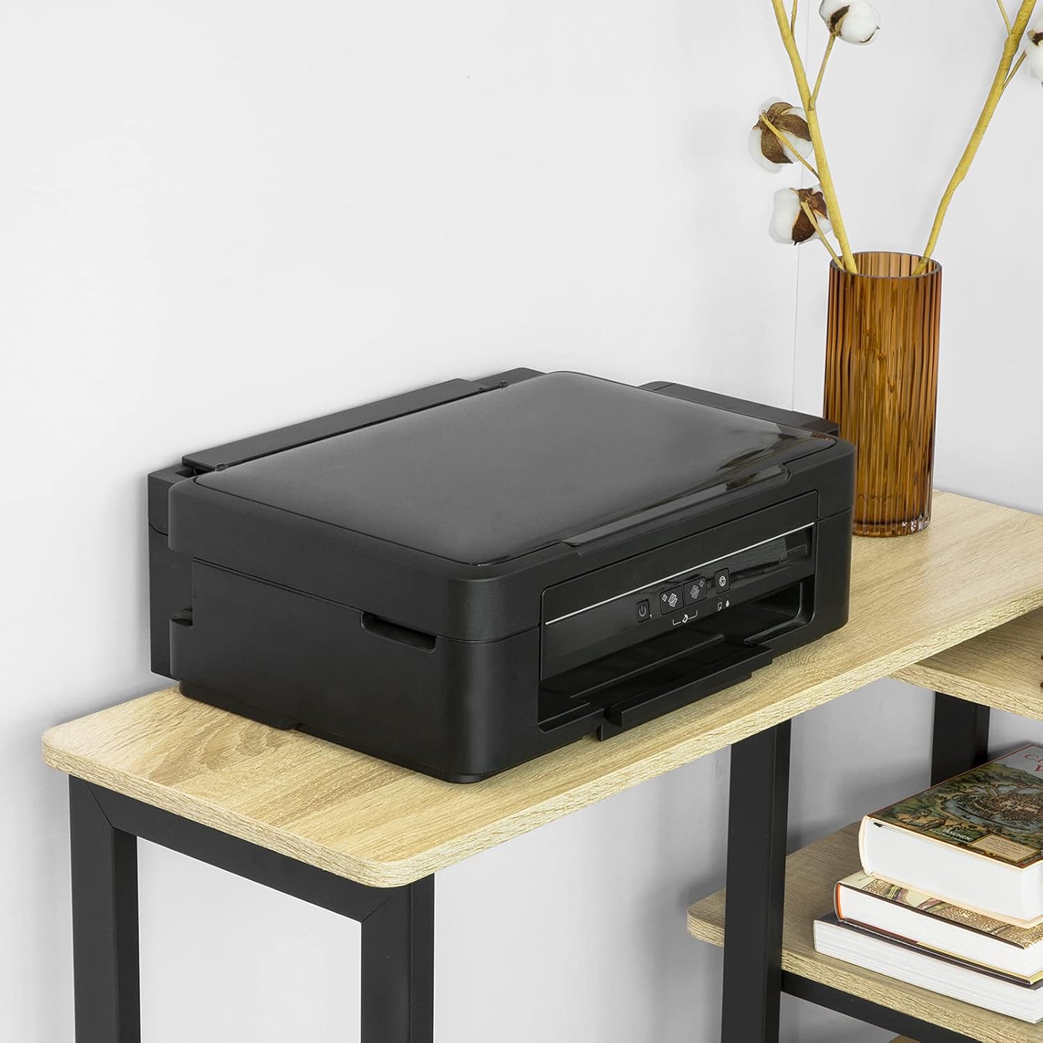 Skab et moderne og funktionelt rum med dette alsidige L-formede bord i industriel stil. Bordet er den perfekte tilføjelse til ethvert rum, da det kan bruges som et sidebord, konsolbord eller endda som et pladsbesparende skrivebord ved siden af sofaen.