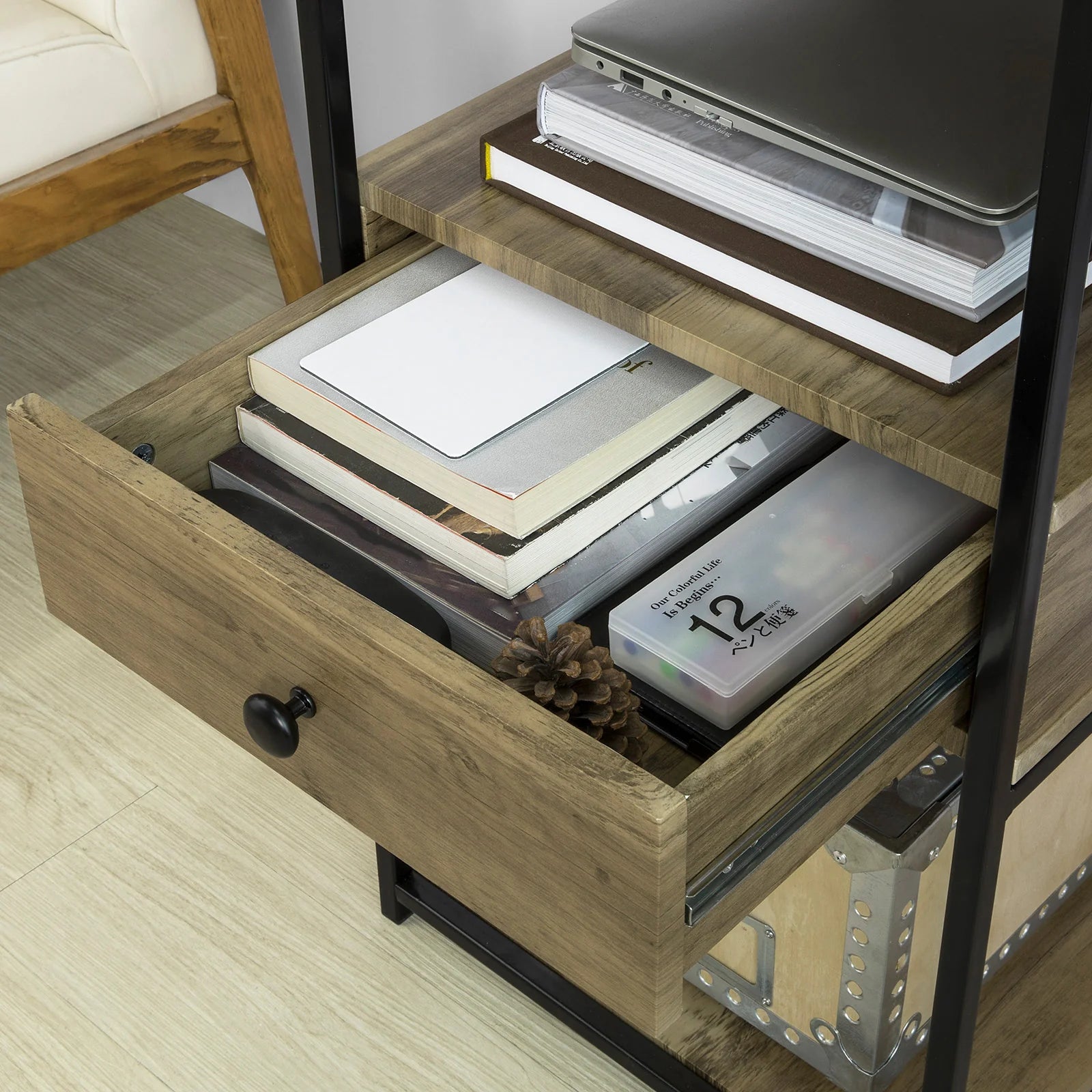 Skrivebordet er udstyret med en skuffe og fire hylder, der giver dig masser af opbevaringsplads til alt dit udstyr. Skabet og skuffen kan monteres på både højre og venstre side, så du kan tilpasse skrivebordet, præcis som du ønsker det. Den robuste metalramme sikrer en stabil og holdbar struktur.