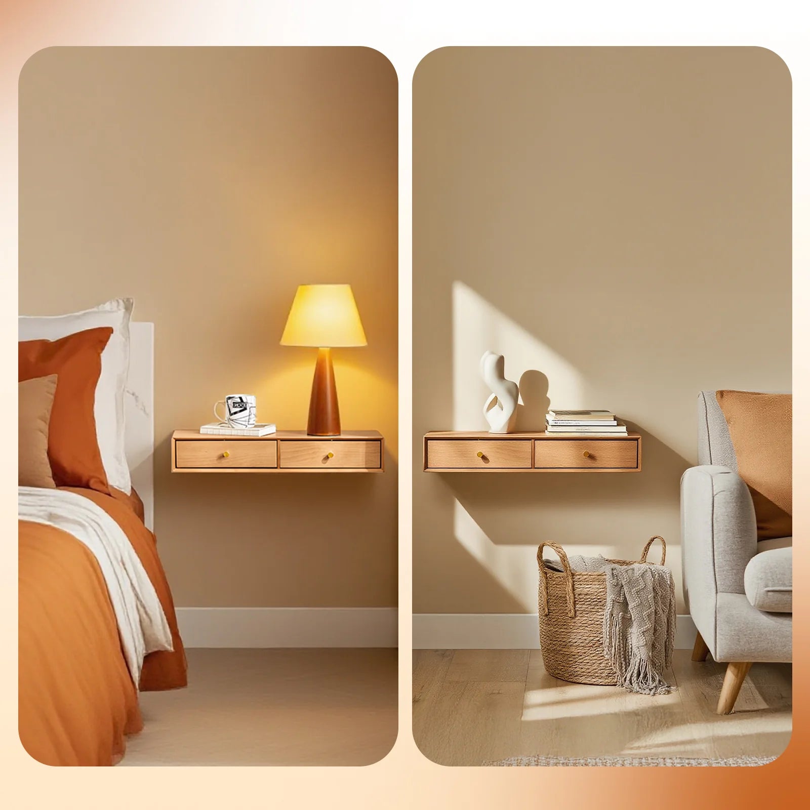 Opgrader din entré, stue eller soveværelse med denne smukke, væghængte hylde, der kombinerer naturlig elegance med praktisk funktionalitet.