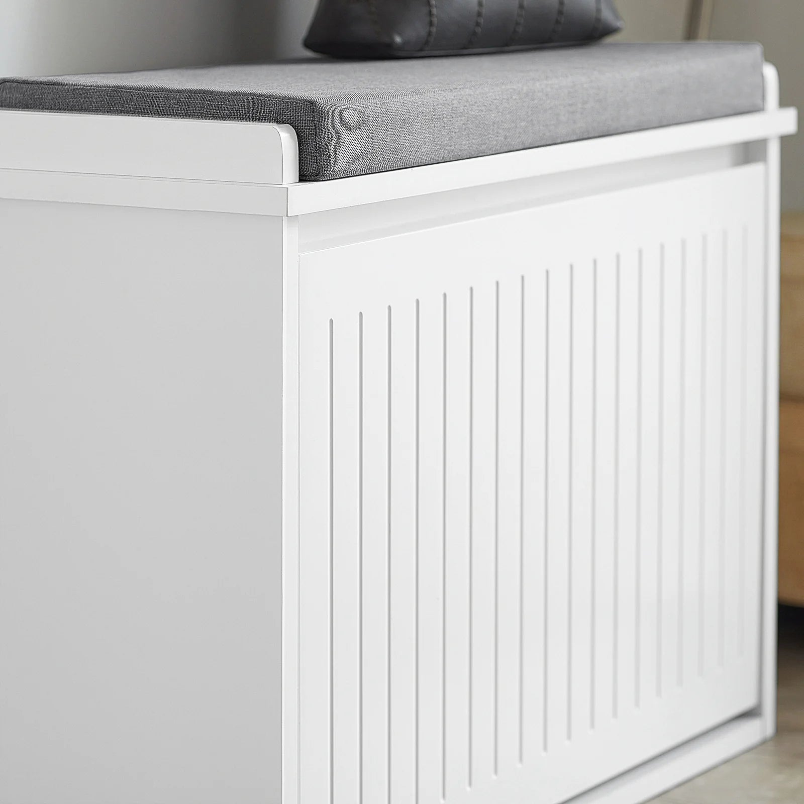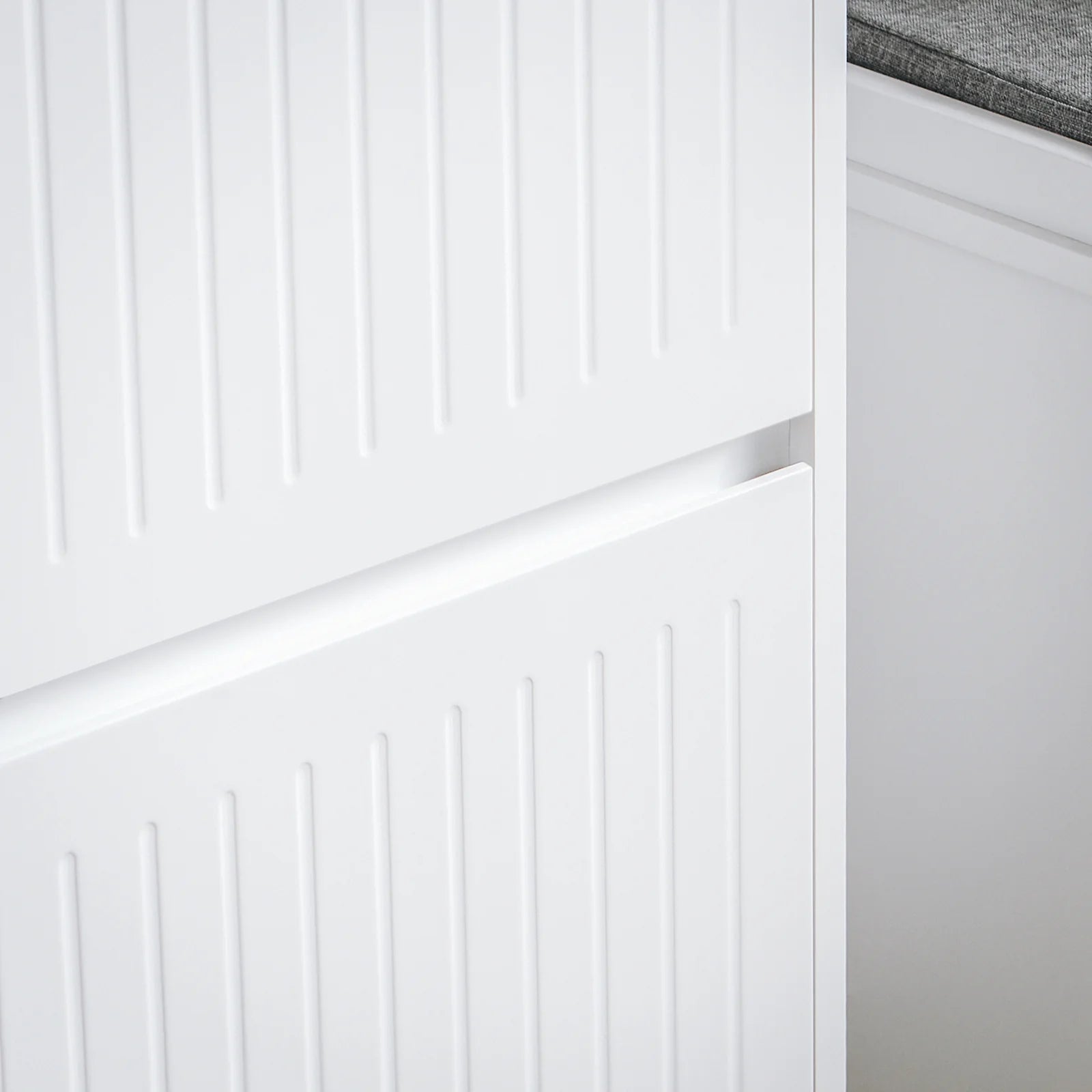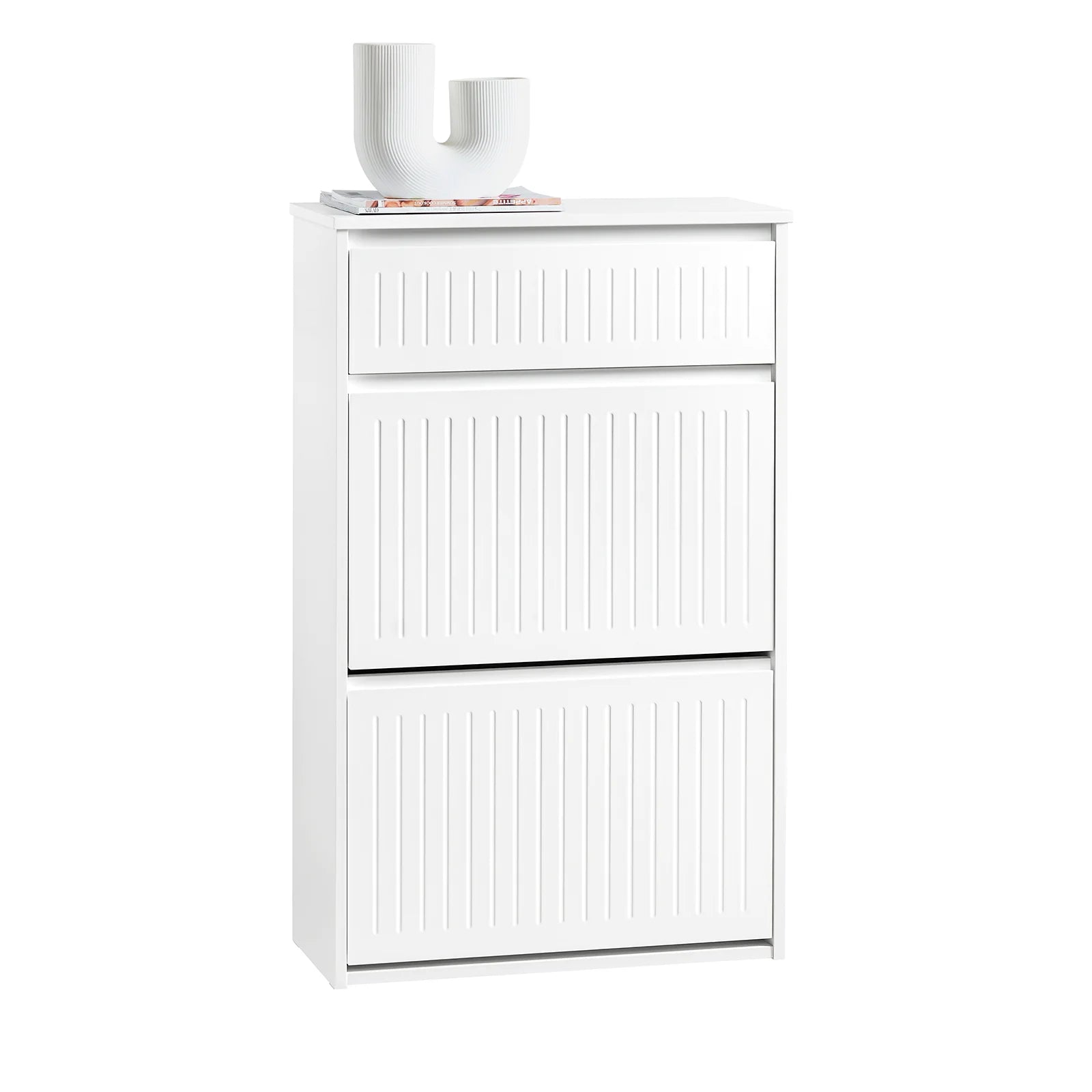 Masser af skoplads: De to store flip-skuffer med dobbelt-rækker sørger for, at hele familiens fodtøj bliver gemt væk bag det elegante hvide ydre.
