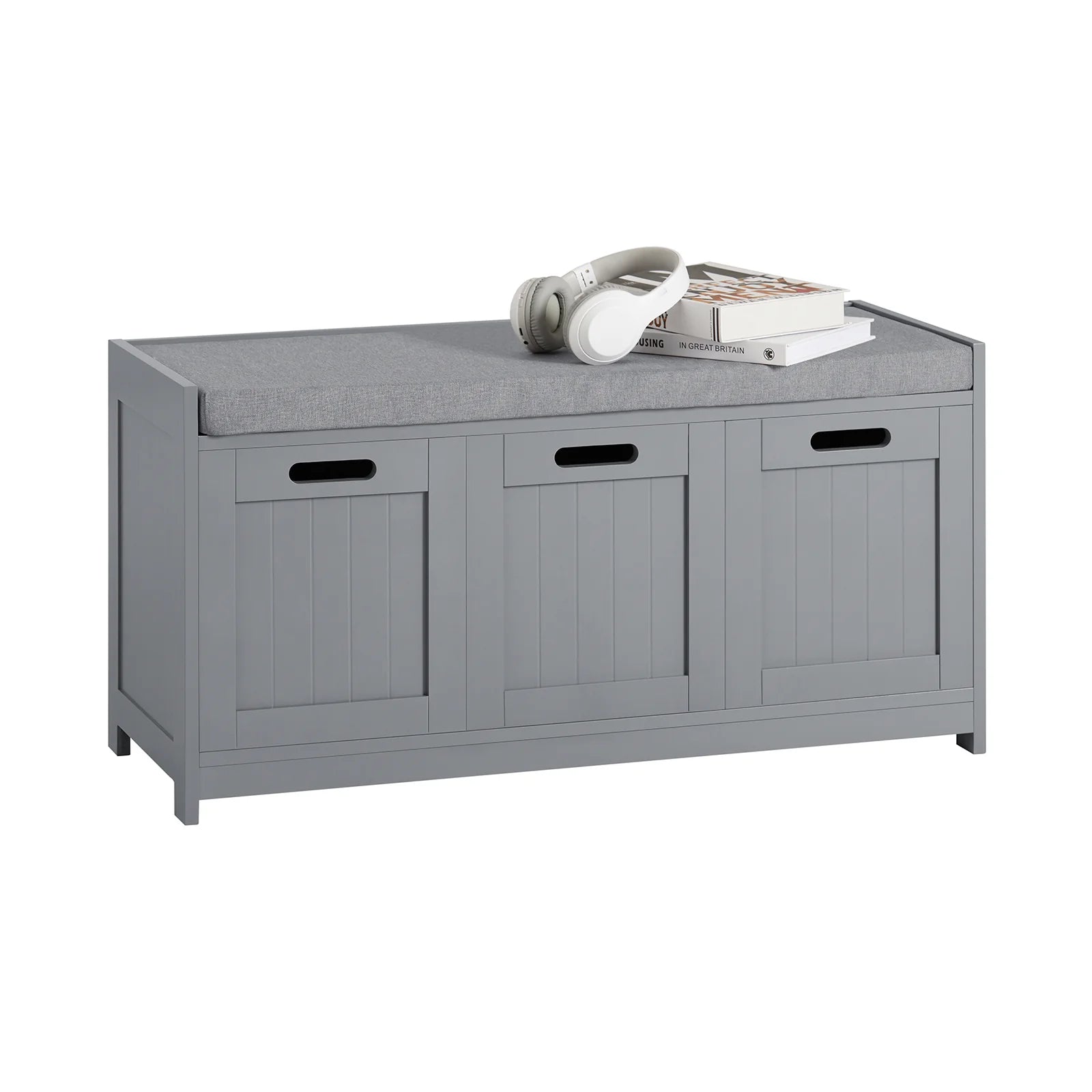 Moderne skobænk med 3 opbevaringsrum, 35 x 90 x 45 cm, grå