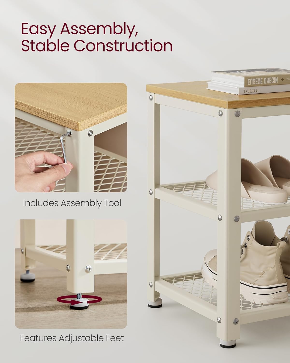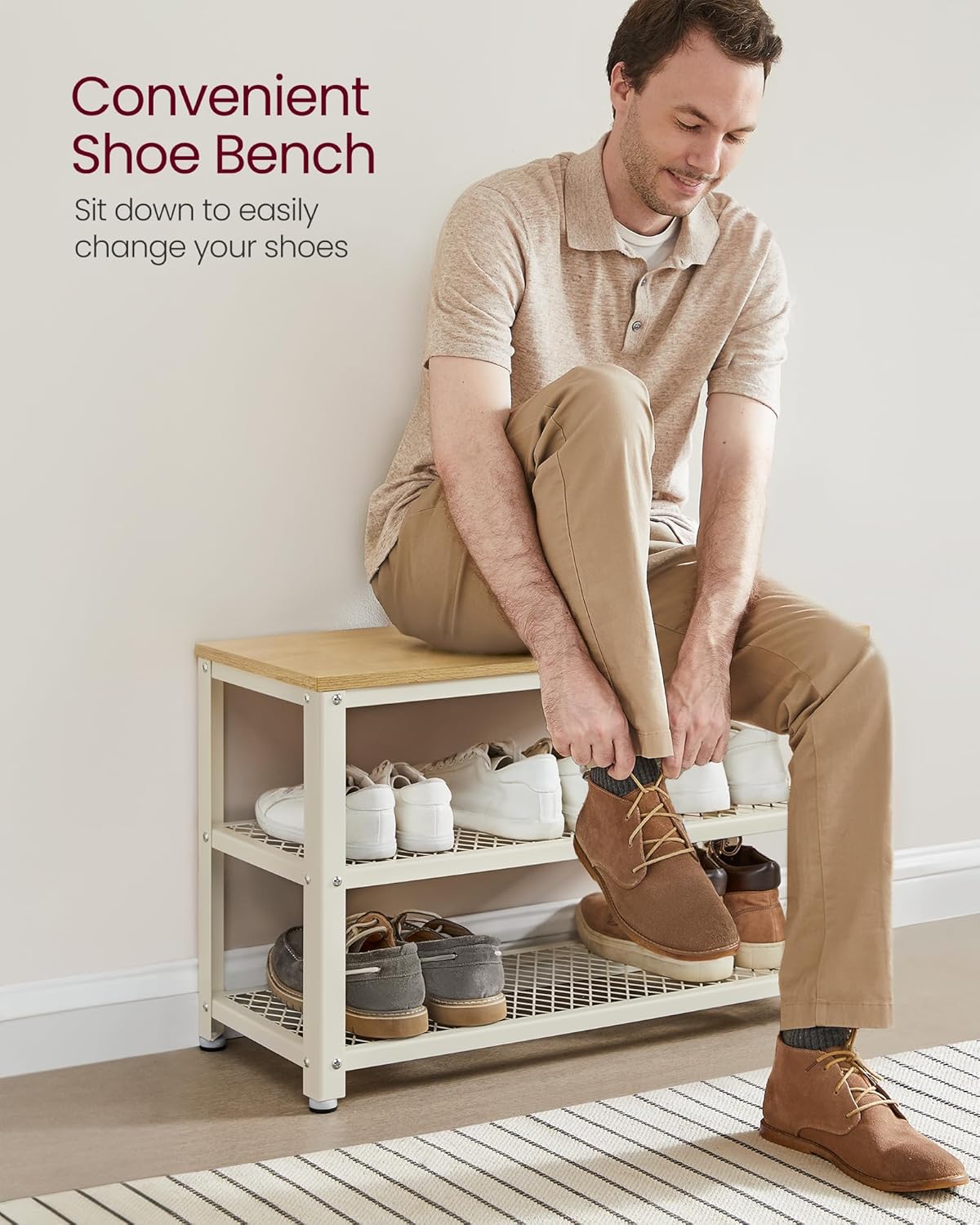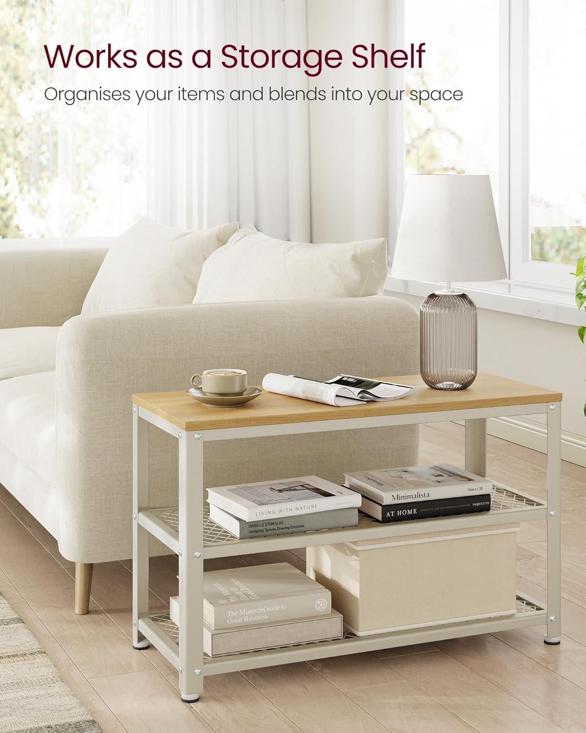 Skobænk med 2 hylder, industrielt design i egetræsbeige og klassisk hvid, 30 x 73 x 45 cm