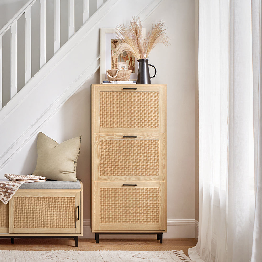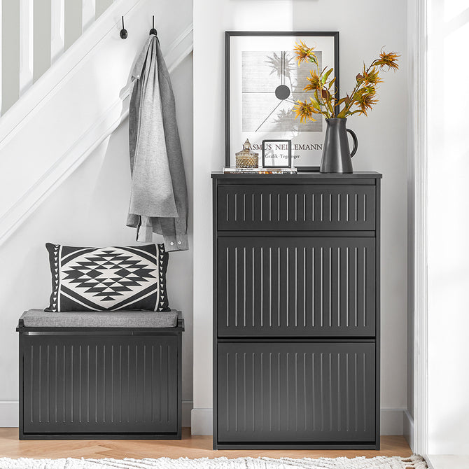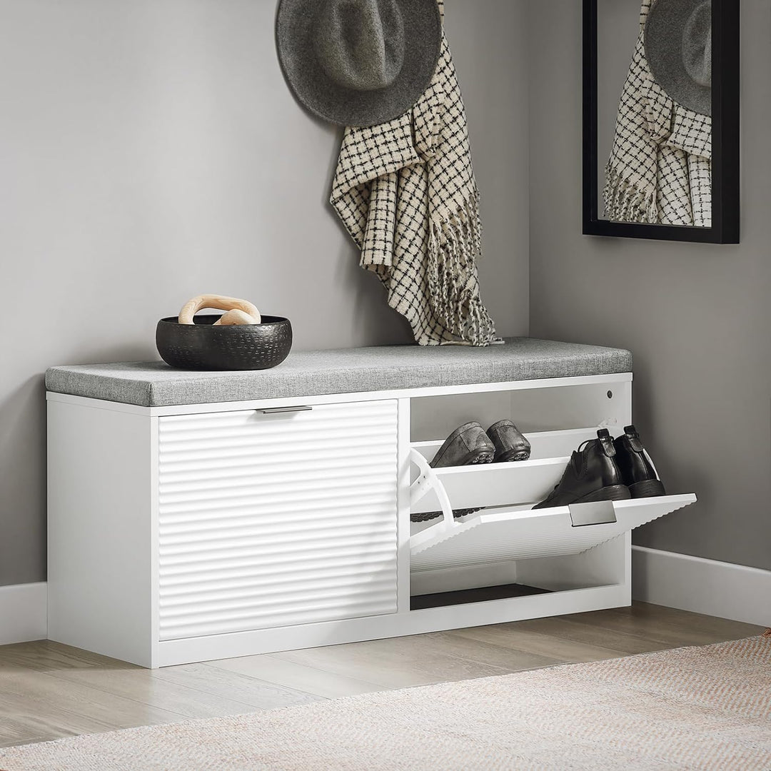 Hvis du godt kan lide tanken om at gemme dine ting lidt væk, men ikke ønsker at have din opbevaring på hylder (som i skoreolen eller skoskabet), kan en skobænk med skuffer eller opbevaringskasser måske være løsningen for dig.
