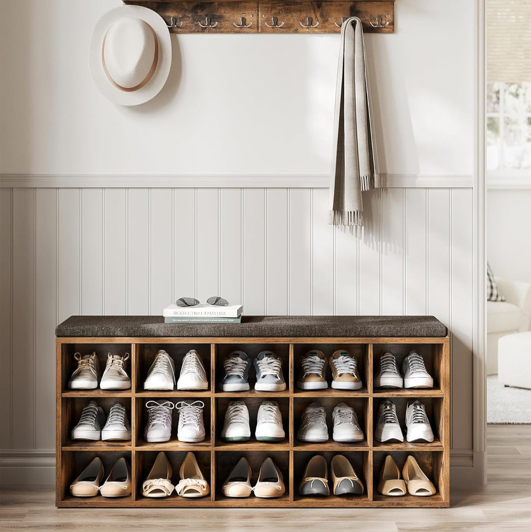 Skobænk med forskellige behov for opbevaring