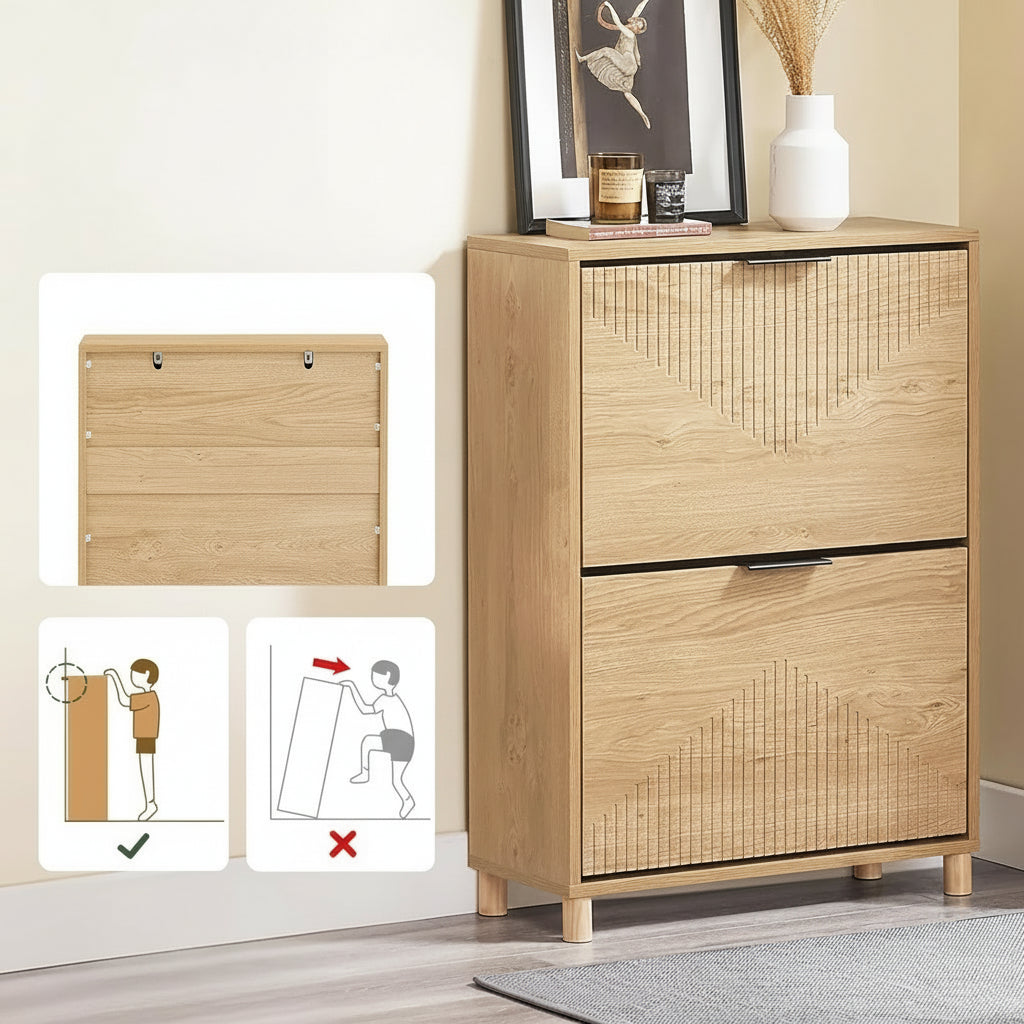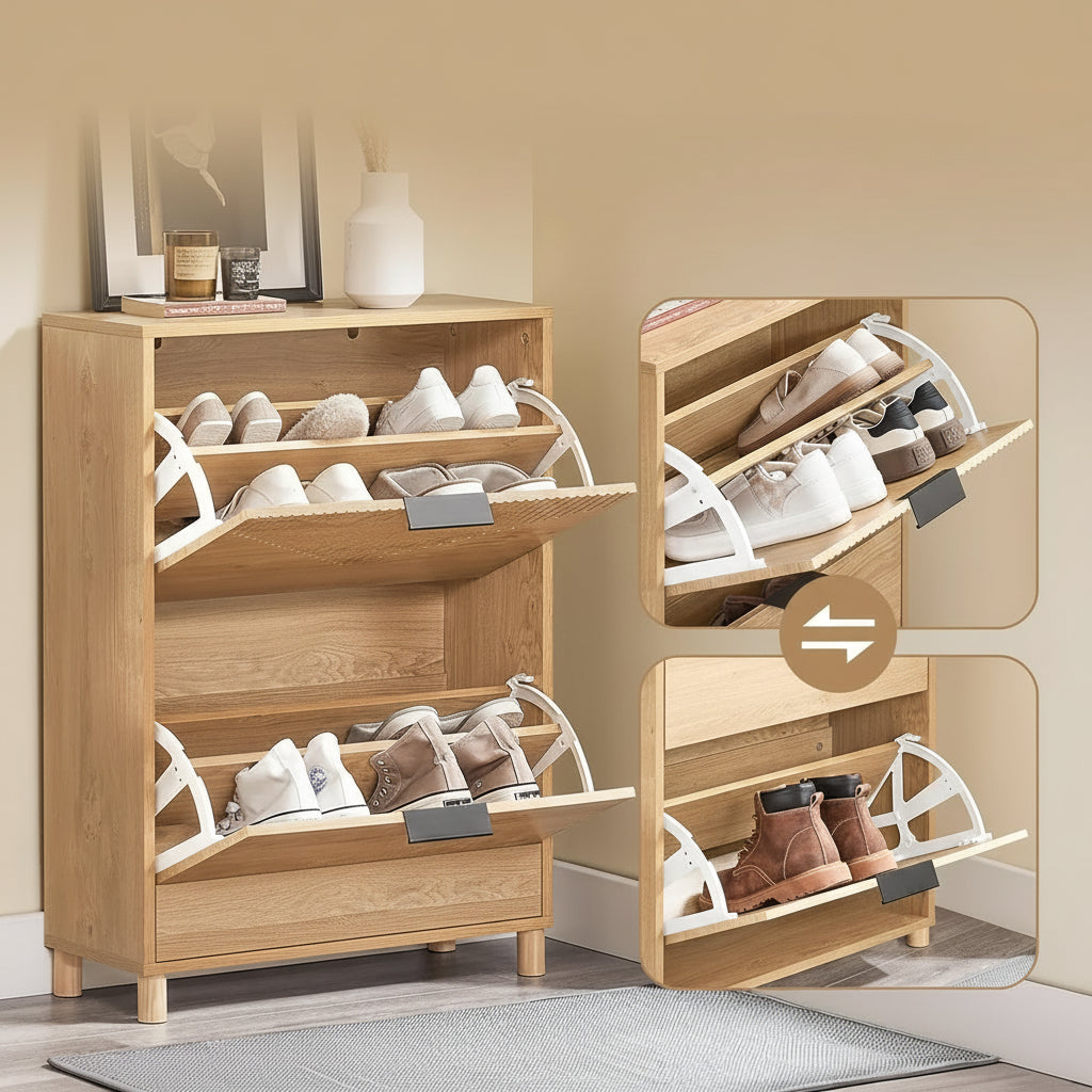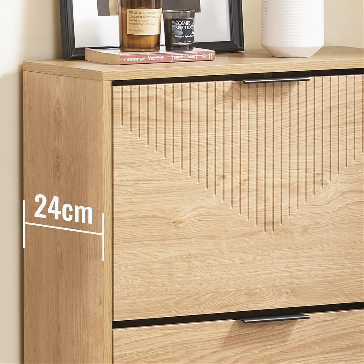 Takket være klapdesignet er dette skoskab smalt perfekt til små gangarealer. Det sparer plads og hjælper med at opbevare sko pænt og støvfrit uden at optage meget gulvplads.
