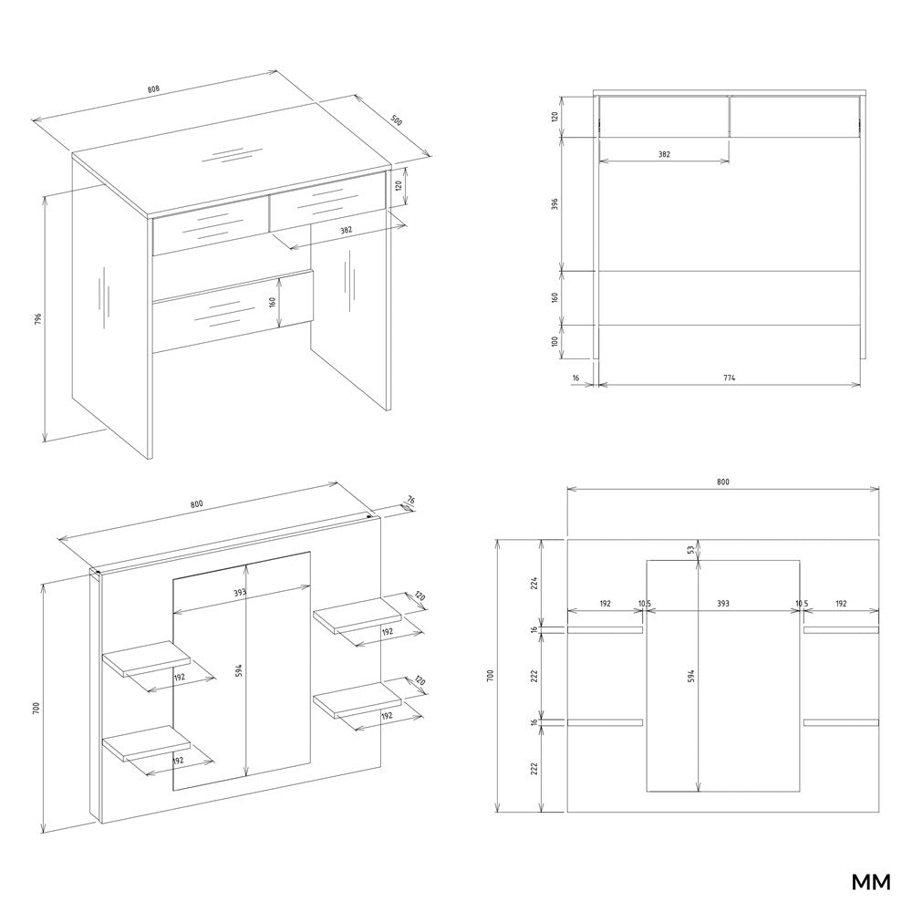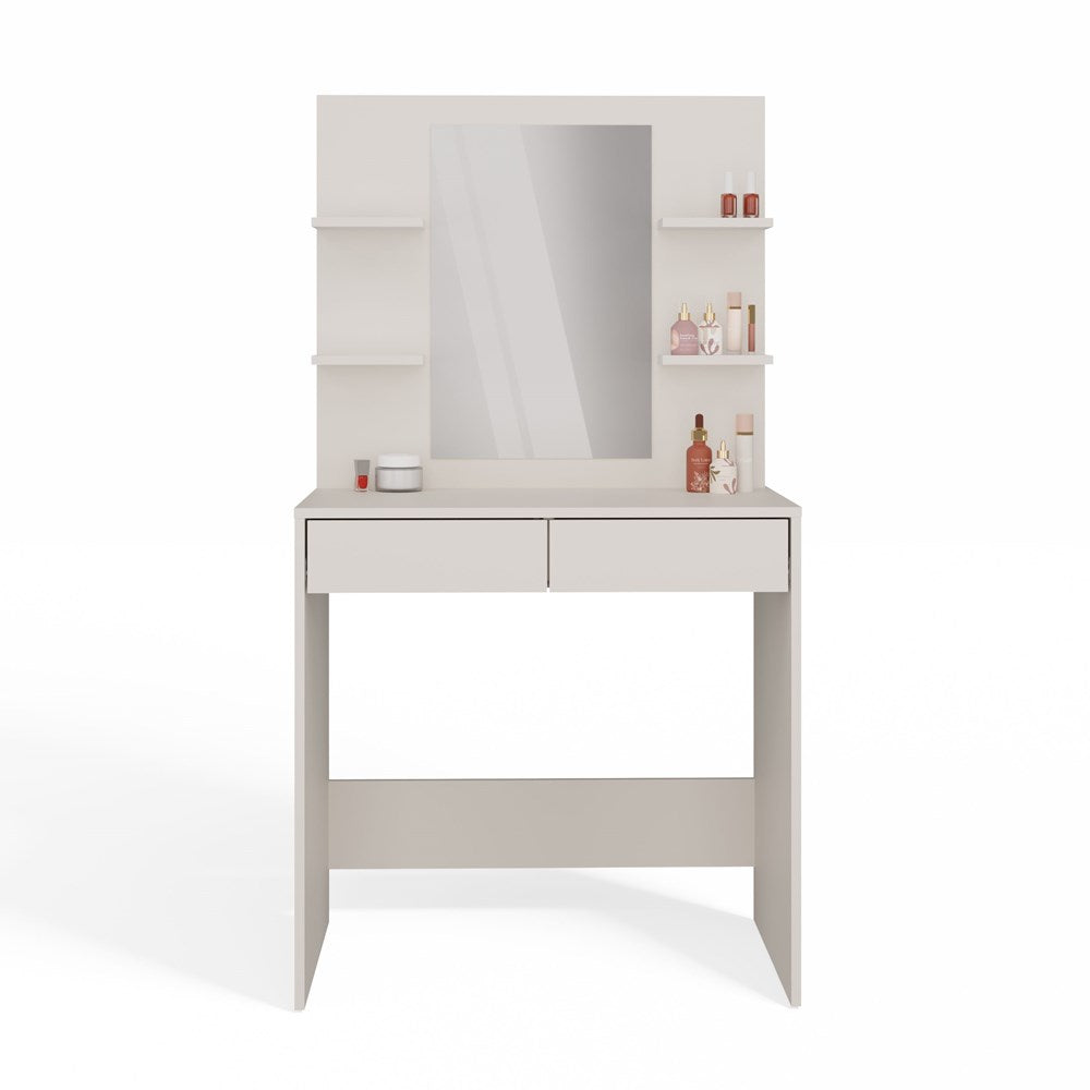 MARINA 2S med spejl og 4 hylder er den perfekte kombination af æstetik og funktionalitet. Sminkebordet er designet til dig, der ønsker en smuk og velorganiseret skønhedsstation – som samtidig kan fungere som et praktisk skrivebord.