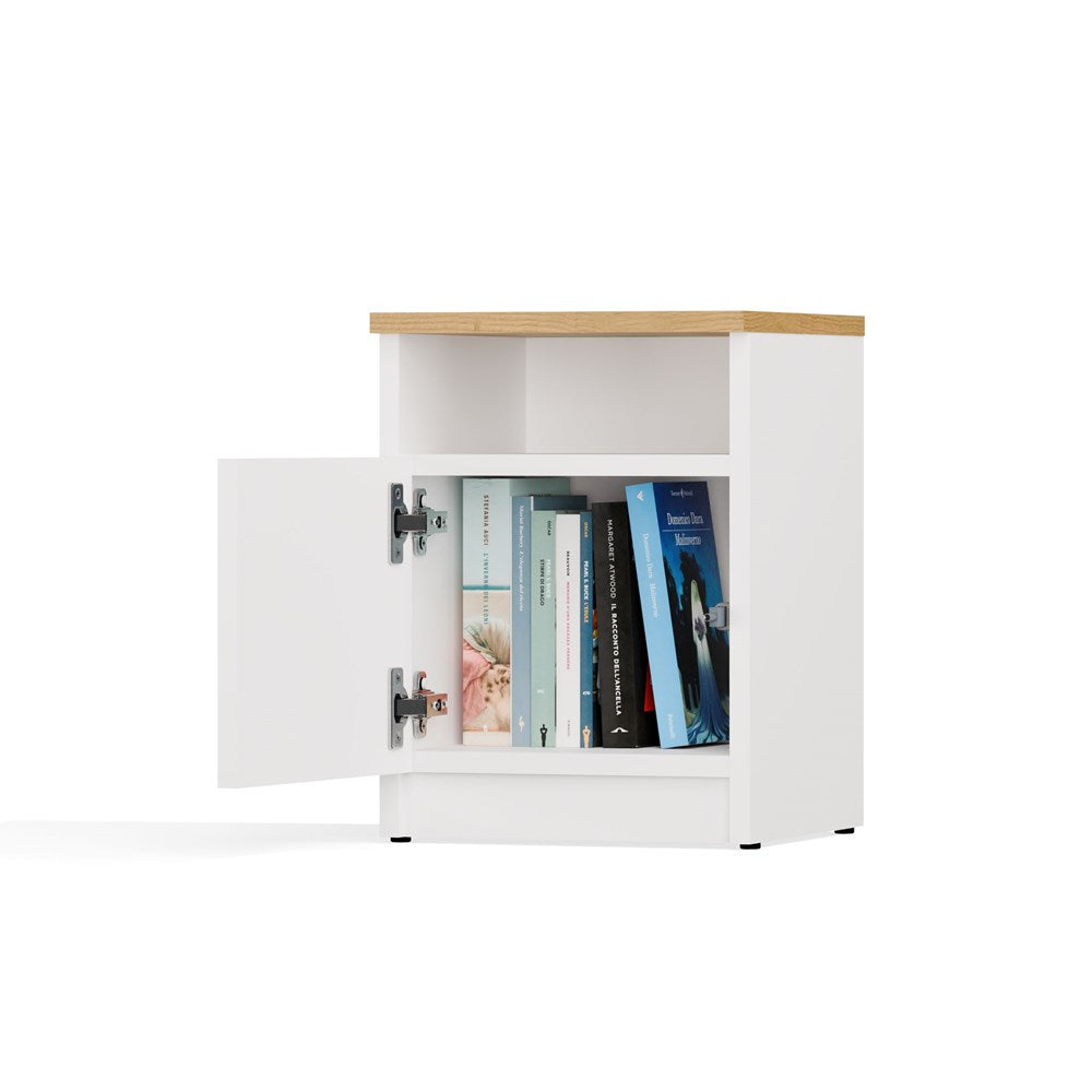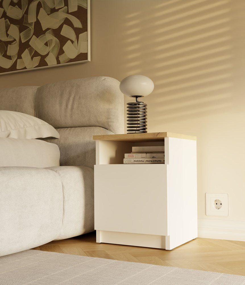 Natbordet GALAX 30 1D er et praktisk og stilrent supplement til ethvert soveværelse. Med en åben hylde samt et lukket rum bag lågen er det ideelt til opbevaring af bog, telefon, oplader eller andre ting, du gerne vil have lige ved hånden.