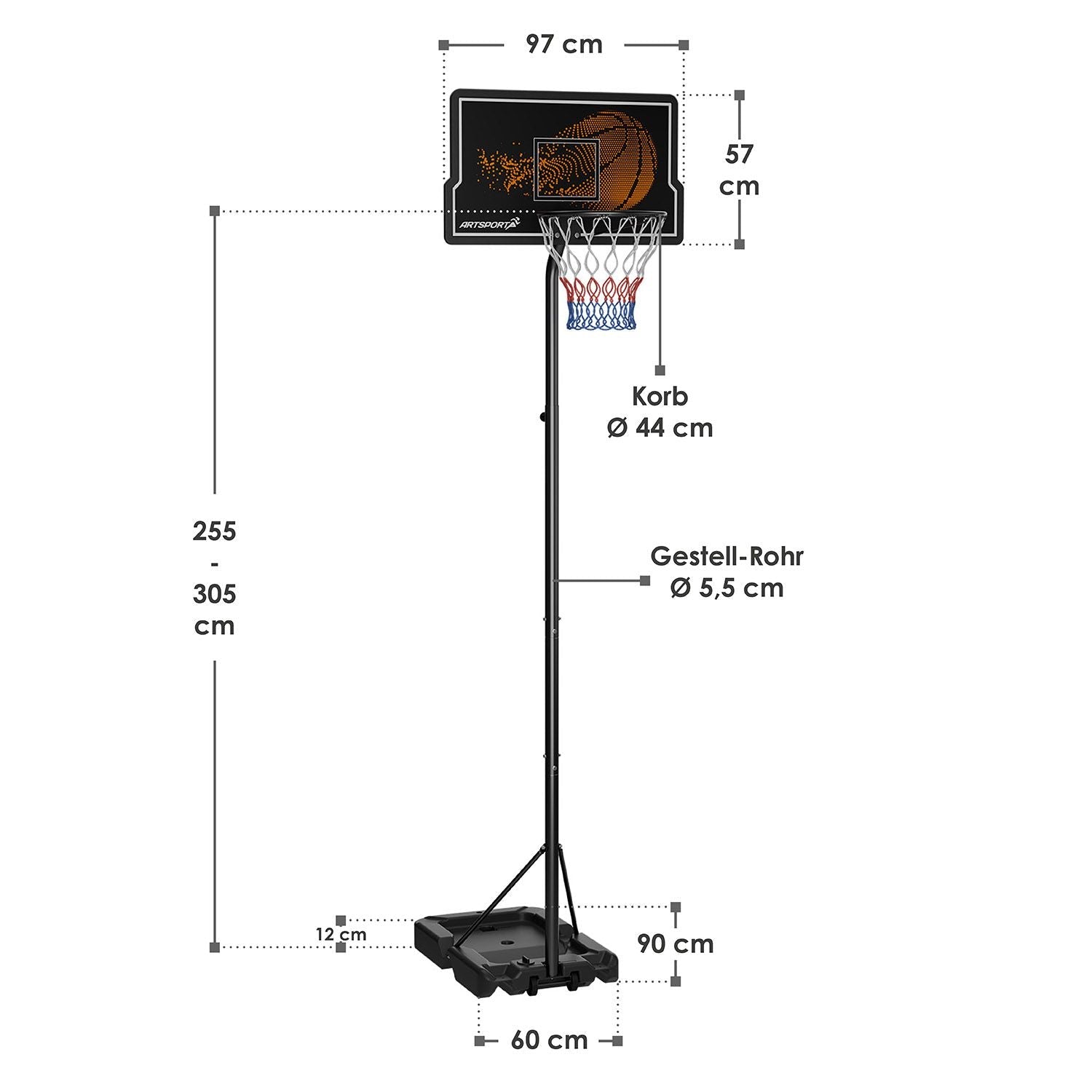 • Perfekt Højder: Ved en kurvehøjde på 255 cm kan de første layups øves fremragende. For øvede basketballspillere giver 305 cm en professionel kurvehøjde.