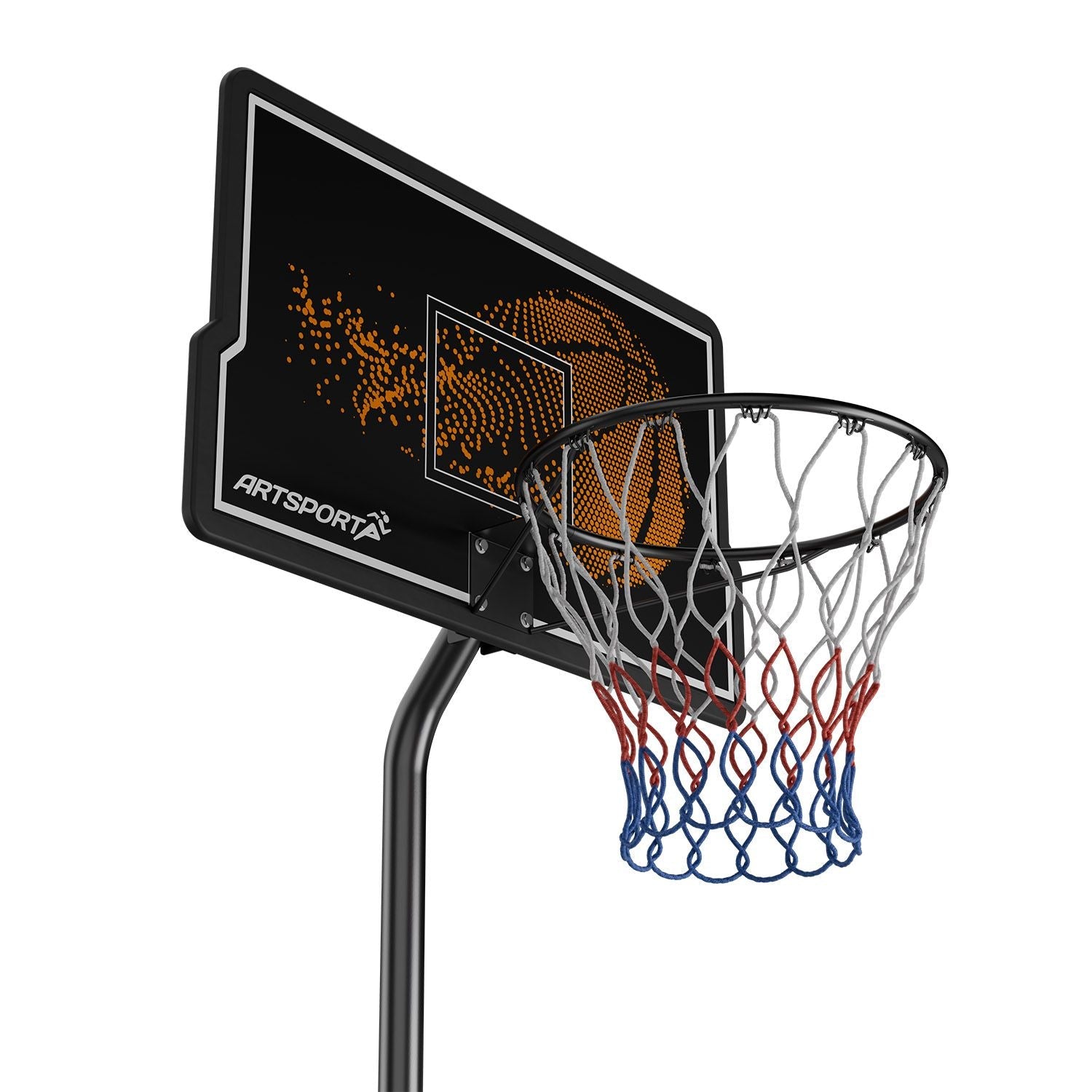 • Regulær Størrelse: Ikke kun stativet imponerer med sin variable højde; ringen i robust metal overbeviser også. Med sin indvendige diameter på 44 cm svarer den til den klassiske størrelse og passer til enhver basketball.