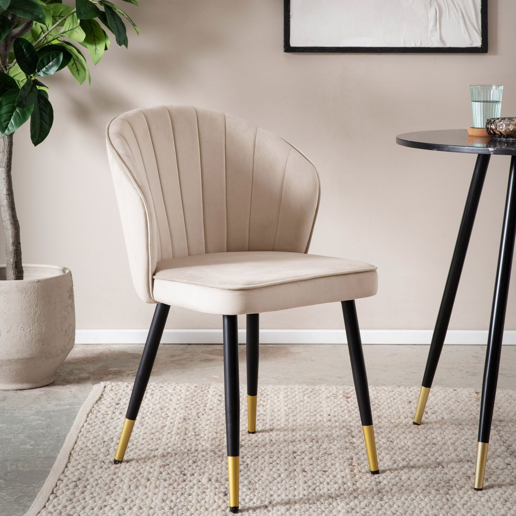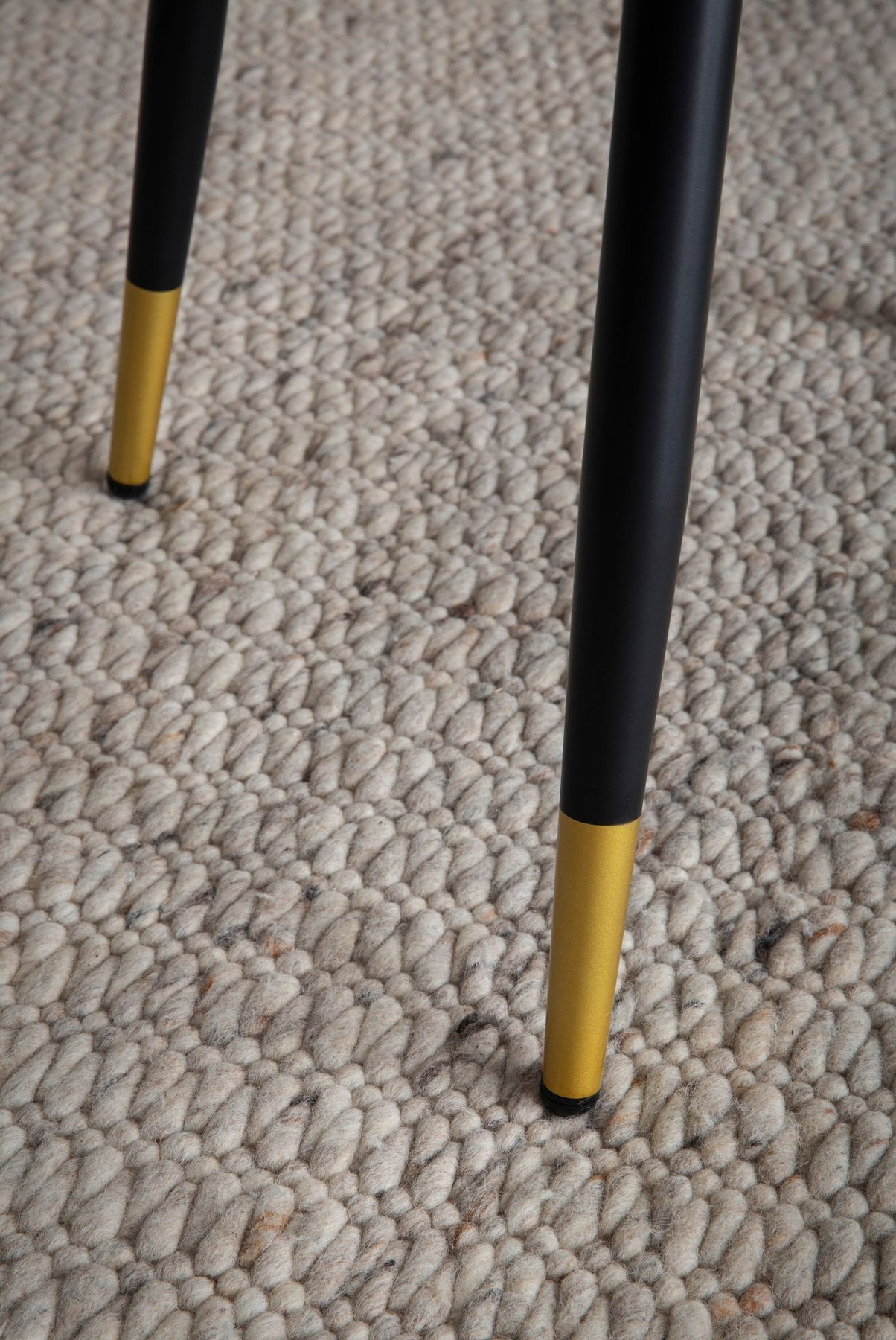 Eventuelle ujævnheder i gulvet kan kompenseres for af de højdejusterbare kapper. Sædeskallen, i kombination med den generøse polstring, sikrer længere siddekomfort ved spisebordet. Takket være metalbenene har køkkenstolene en meget sikker og stabil base. Anbefalet maksimal belastningskapacitet pr. stol: 110 kg. Materiale: Sædebetræk: fløjl; Ben: lakeret jern; Tekstilsammensætning: 100% polyester. Leveringsomfang: Et sæt med to spisestuestole (uden dekoration). Samlevejledning og materialer medfølger. Leveringen inkluderer samling. Leveringstilstand: adskilt og forsvarligt pakket. Nem montering takket være den letforståelige samlevejledning. Plejeanvisning: Vi anbefaler at duppe friske pletter med det samme med en klud. Ved behandling med bagepulver kan det tørre pulver blot påføres det berørte område. Lad det sidde natten over, og støvsug bagepulveret op den næste dag.