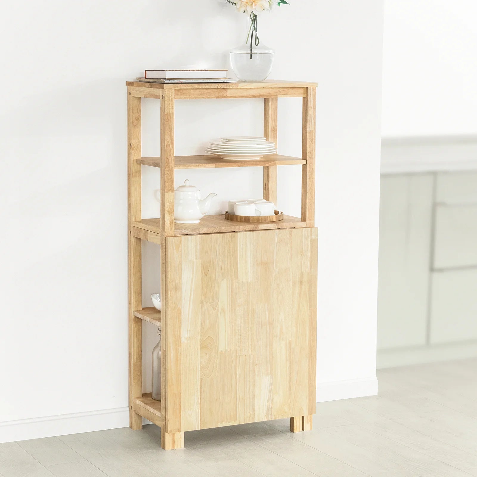 Gør din bolig mere funktionel med dette pladsbesparende og elegante spisebord. Bordpladen kan nemt foldes ud til at danne et spisebord og foldes ned igen for at frigive plads, når det ikke er i brug. På siden er der fem hylder, der er perfekte til opbevaring af bestik, glas eller andre ting, du skal bruge, når du sidder ved bordet.