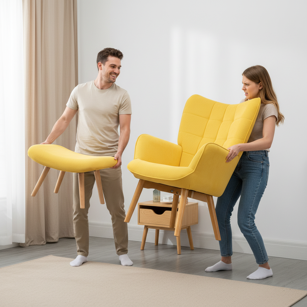Det tykt polstrede sæde giver masser af komfort, mens den ekstra fodskammel giver dig mulighed for at lægge fødderne op. Dette sæt af lænestol og puf skaber en hyggelig atmosfære til dine aftener.