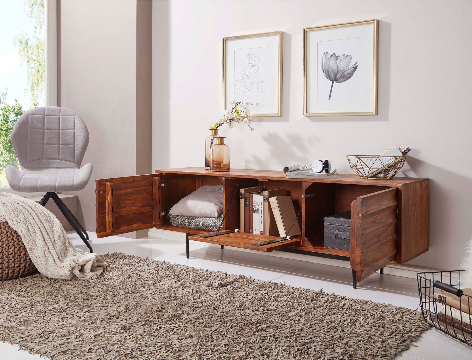 TV-bord i massivt Sheesham – industrielt design med stilfulde detaljer