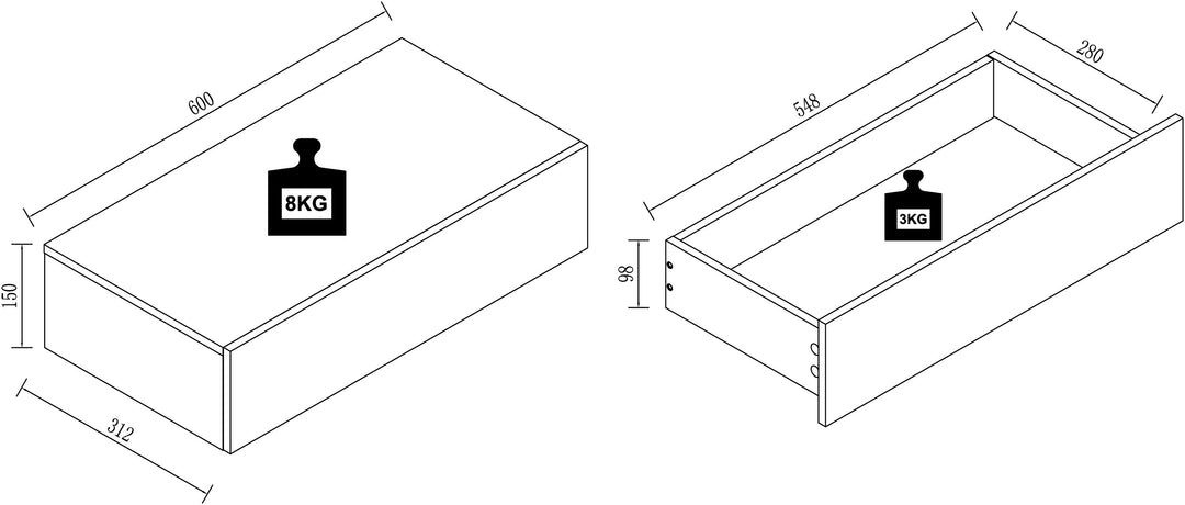 Væghylden byder på en praktisk opbevaringsflade, mens den store skuffe også giver plads til diverse redskaber. Vægskuffen kan suppleres med andre varianter fra "VCM Usal" serien.