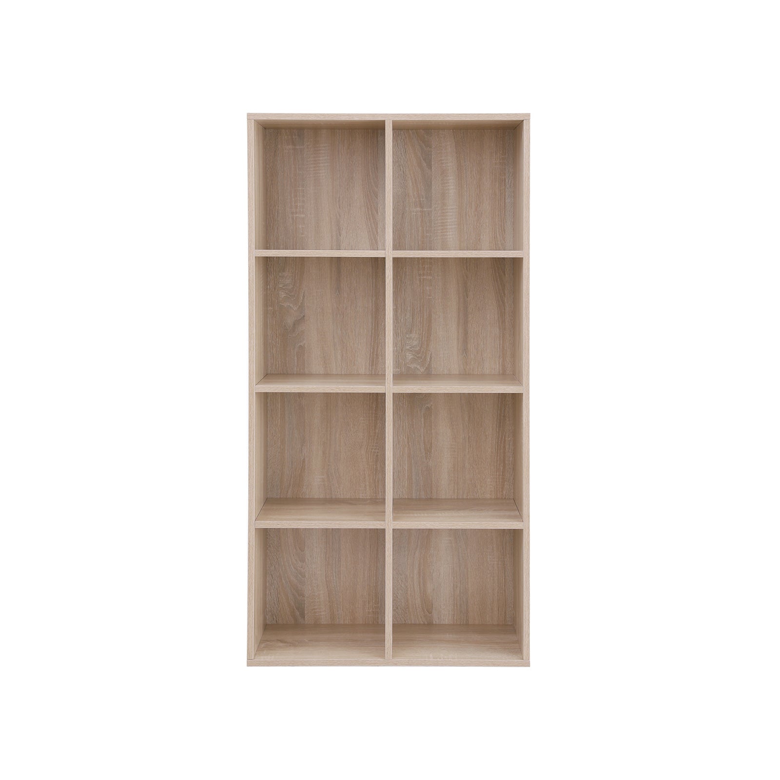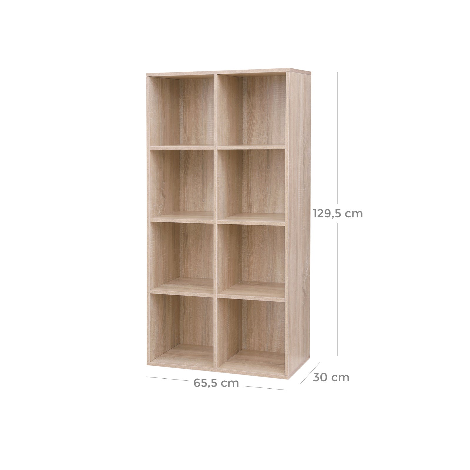 8-kubers opbevaringsreol, træbogreol og udstillingshylde, fritstående skab til kontor, stue, soveværelse, egfarve