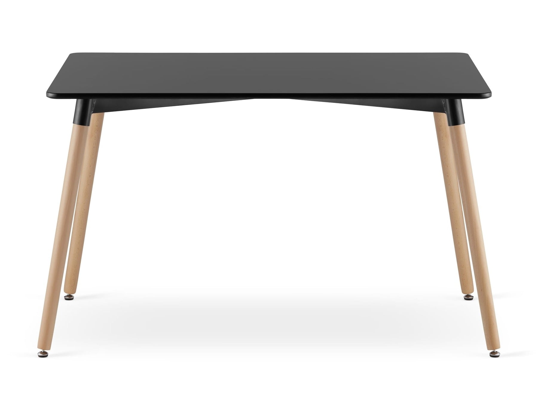 Den sorte bordplade med mat finish giver et moderne og minimalistisk udtryk, mens de solide bøgeben tilfører varme og naturlig kontrast. Et design, der passer ind i både klassiske og moderne hjem.