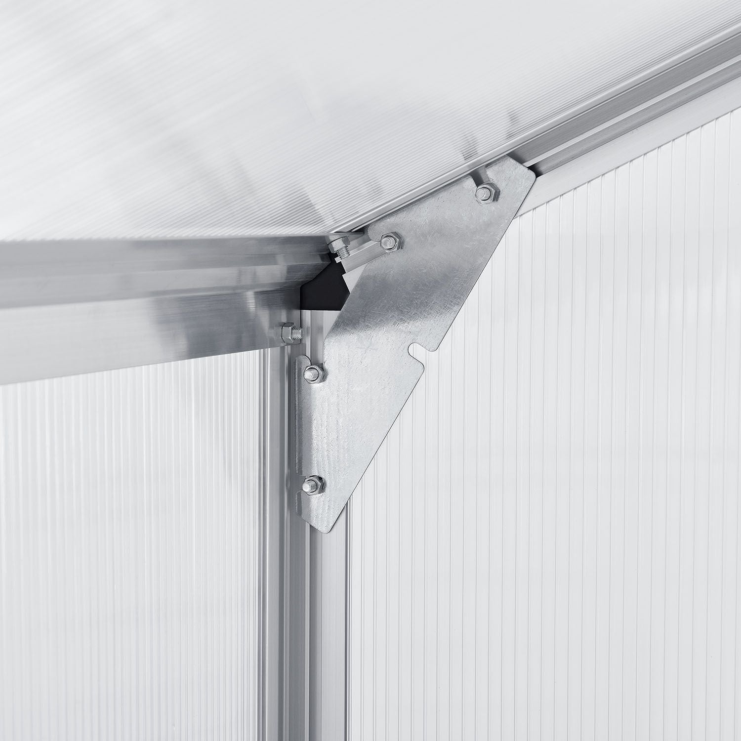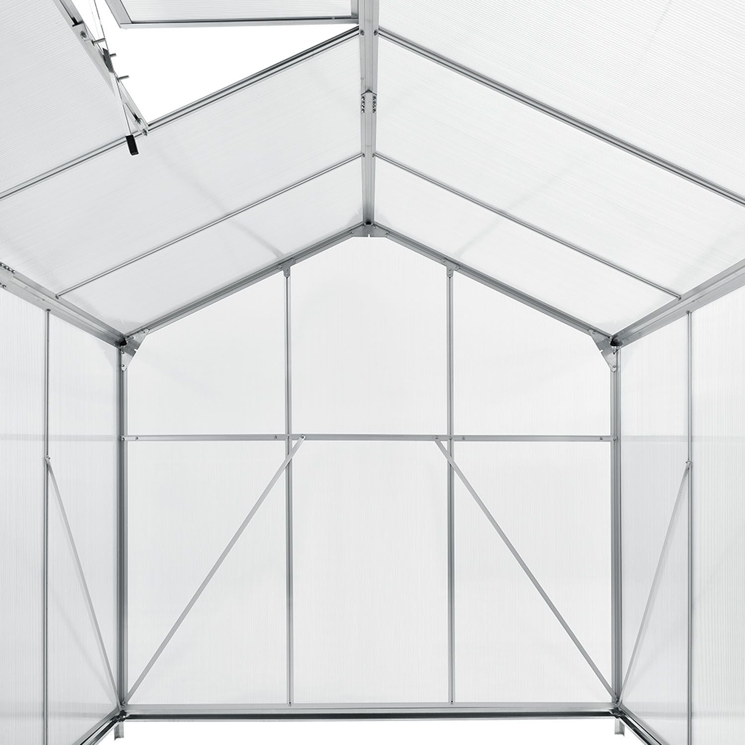 Holdbart Stel: Væksthusets stel består af eloxerede aluminiumsprofiler. De vejrbestandige profiler er yderst holdbare og giver drivhuset stor stabilitet. Afstivninger sikrer yderligere stabilitet.