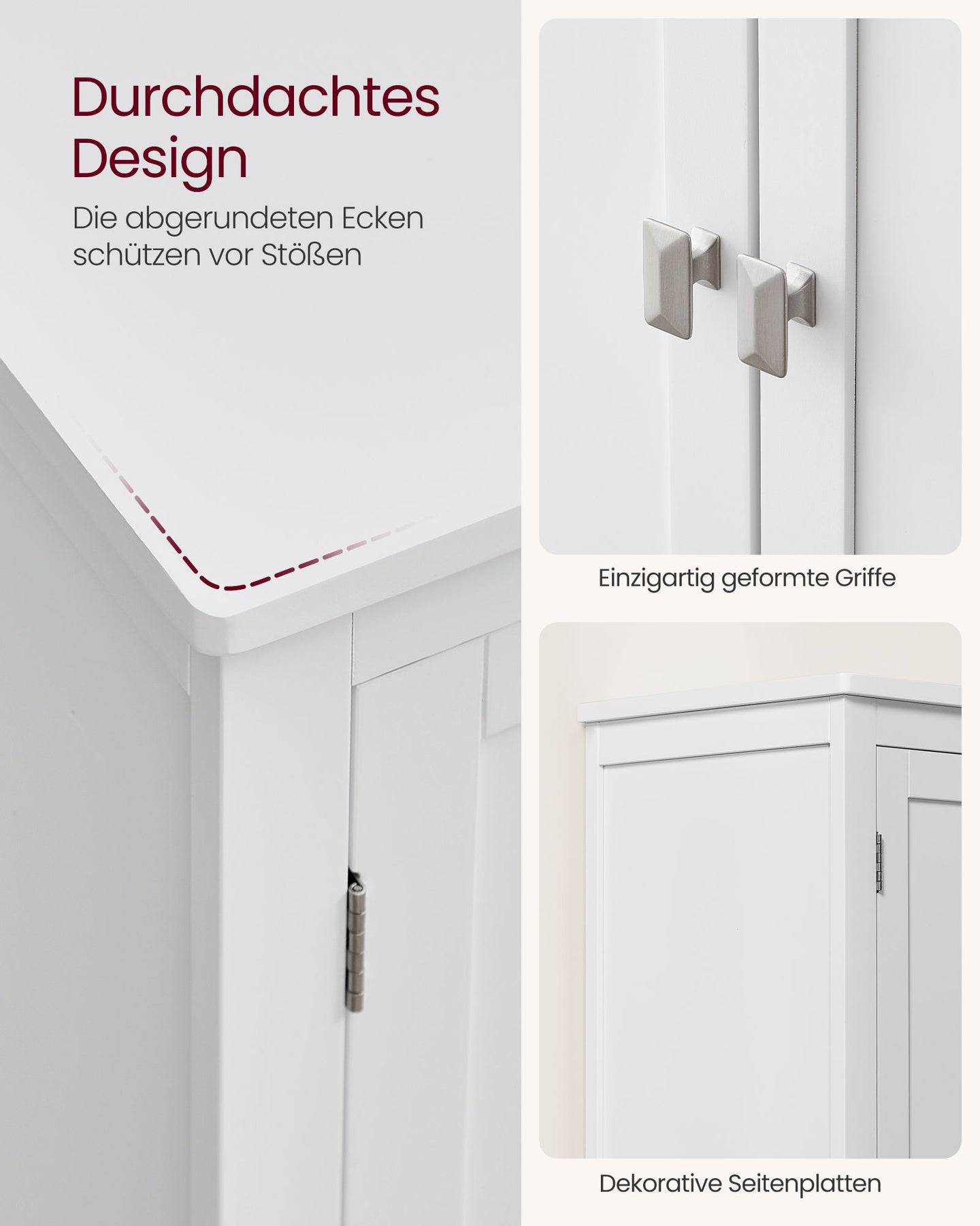 Dette opbevaringsskab er bygget til at holde. Det er fremstillet af MDF af høj kvalitet, der sikrer lang holdbarhed og stabilitet. De afrundede hjørner forhindrer skrammer og det medfølgende anti-tip-kit giver ekstra sikkerhed ved at fastgøre skabet til væggen.