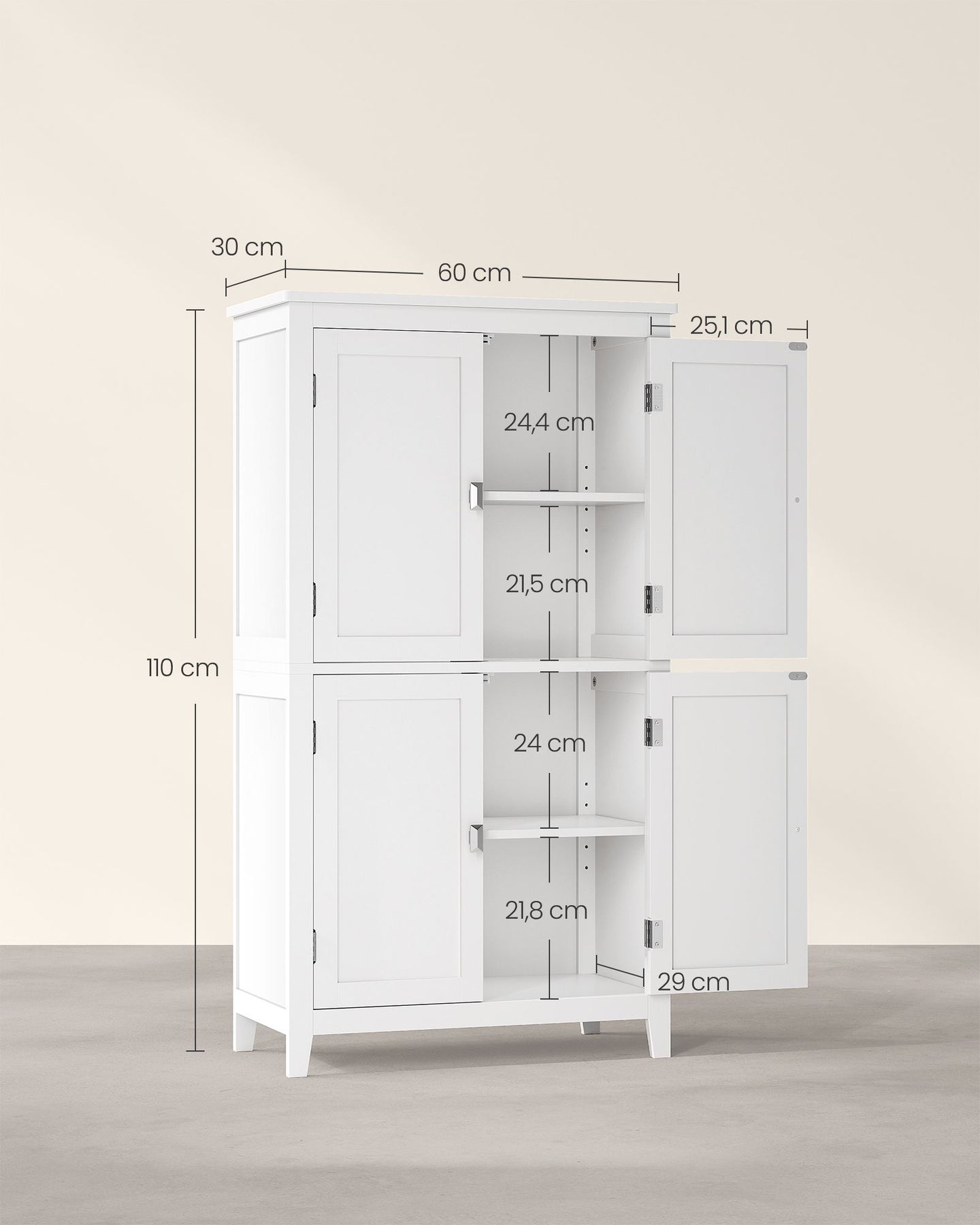 Opbevaringen kan tilpasses præcis til dine behov. I hvert skab kan du justere hylderne i 5 forskellige positioner, så du nemt kan tilpasse højden til de ting, du skal opbevare – uanset om det er høje shampoo-flasker eller små krukker.