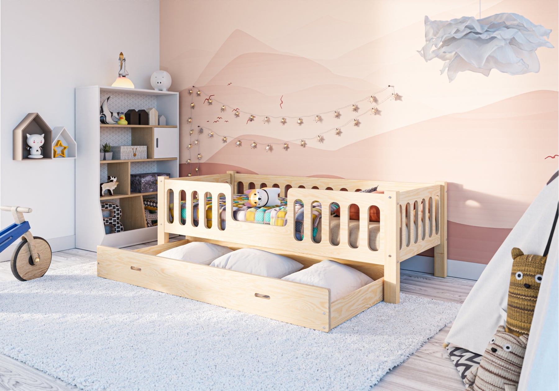 TIAN APP sengen fra RESTWOOD er et økologisk produkt lavet af naturtræ. Det anvendte materiale er meget holdbart - fyrretræ, limet. Konstruktionen er meget stabil - sikker belastning op til 100 kg. Alle elementer i træbørnesengen er slebet og poleret, og kanterne er afrundede, hvilket gør produktet sikkert for dit barn.