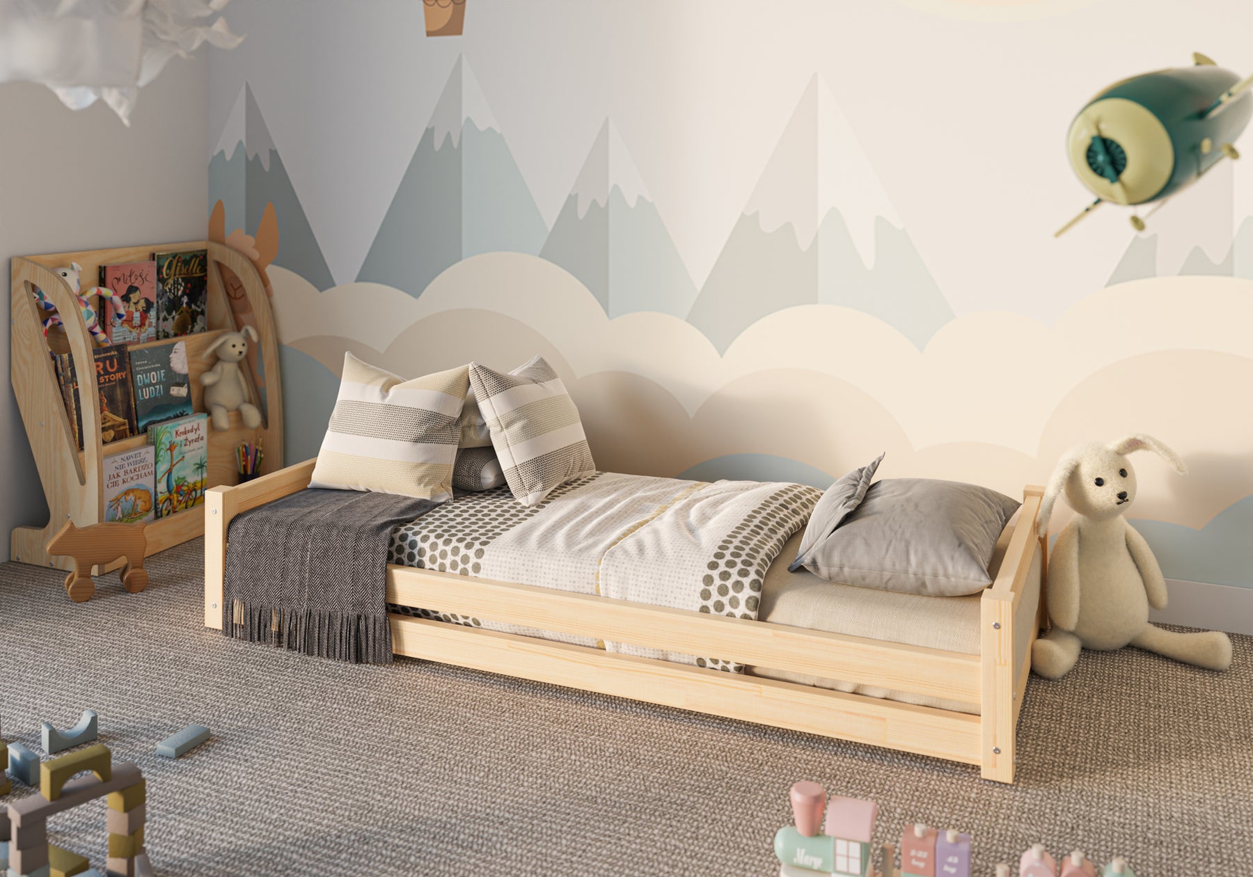 TIAN D sengen fra RESTWOOD er et økologisk produkt lavet af naturtræ. Det anvendte materiale er meget holdbart - limet fyrretræ. Konstruktionen er meget stabil - sikker belastning op til 100 kg. Alle elementer i træbørnesengen er slebet og poleret, og kanterne er afrundede, hvilket gør produktet sikkert for dit barn.