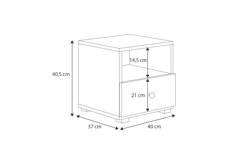 EMI-sengebordet er designet med komfort og funktionalitet i tankerne. Udstyret med en praktisk skuffe giver det mulighed for opbevaring af småting såsom bøger, legetøj eller tilbehør, hvilket hjælper med at holde tingene ryddelige. Den solide konstruktion af lamineret møbelplade sikrer holdbarhed og modstandsdygtighed over for daglig brug. Som en ekstra bonus kan du vælge et farvet håndtag, der gør det muligt for skabet at matche rummets stil og introducerer et element af personliggørelse, som børn elsker.