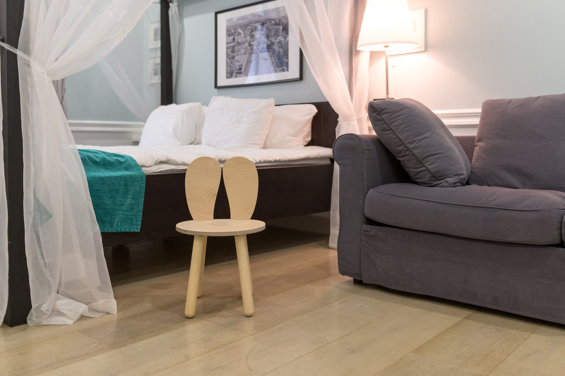 Omhyggeligt håndværket af birkekrydsfiner. Unikt børnemøbel i form af en kanin. Komfortabel, stabil og solid konstruktion.