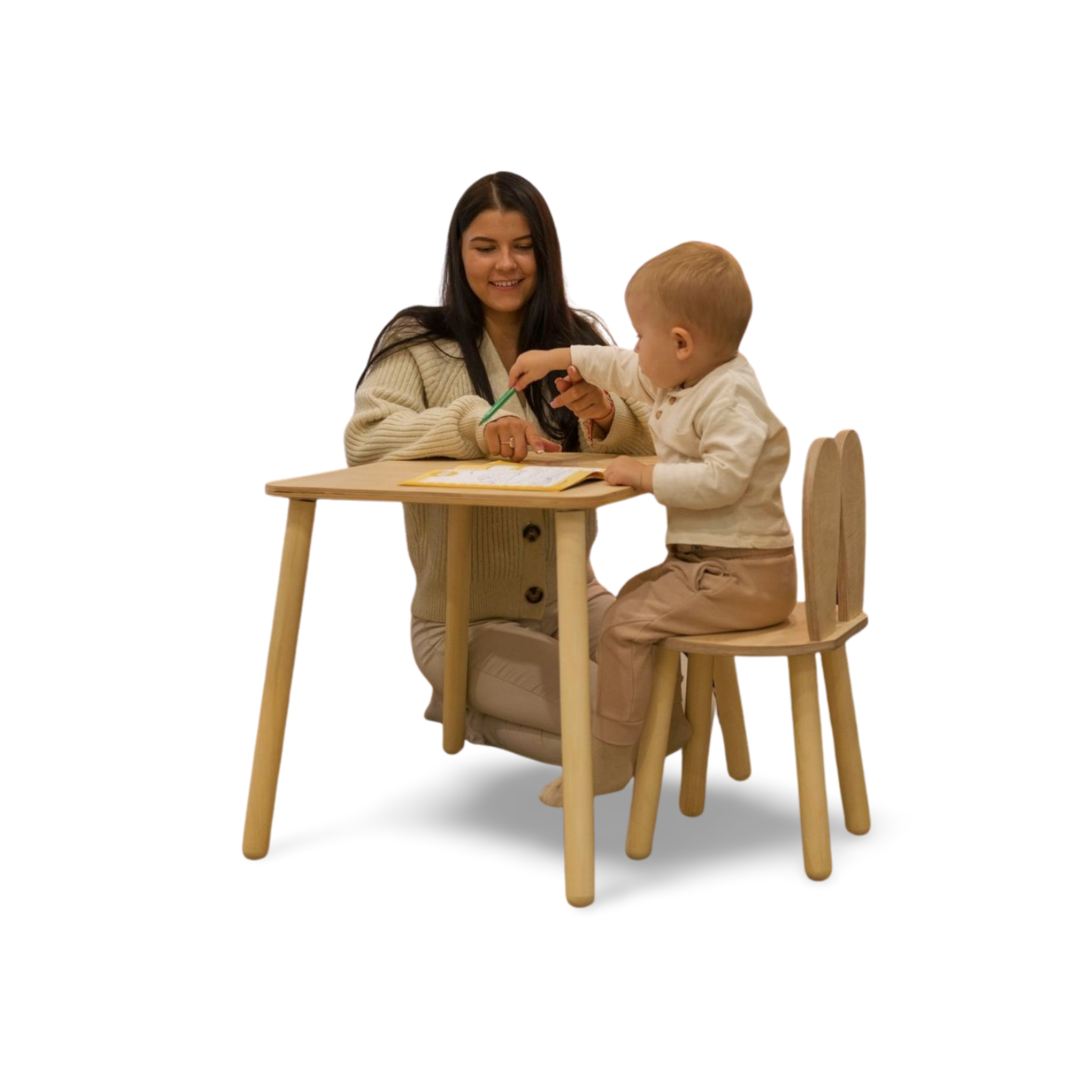 Dette charmerende træ kanin-bord og -stol sæt skaber den perfekte plads til dit barns kreative aktiviteter: farvelægning, kunsthåndværk, læsning og leg.