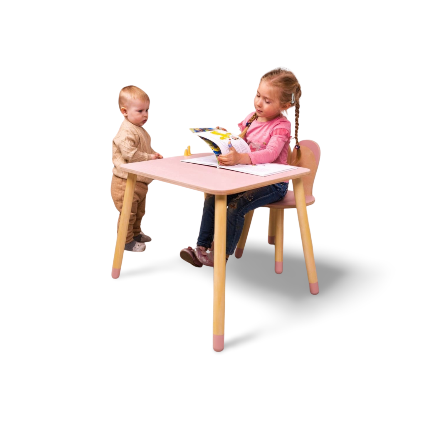 Dette charmerende træ kanin-bord og -stol sæt skaber den perfekte plads til dit barns kreative aktiviteter: farvelægning, kunsthåndværk, læsning og leg.