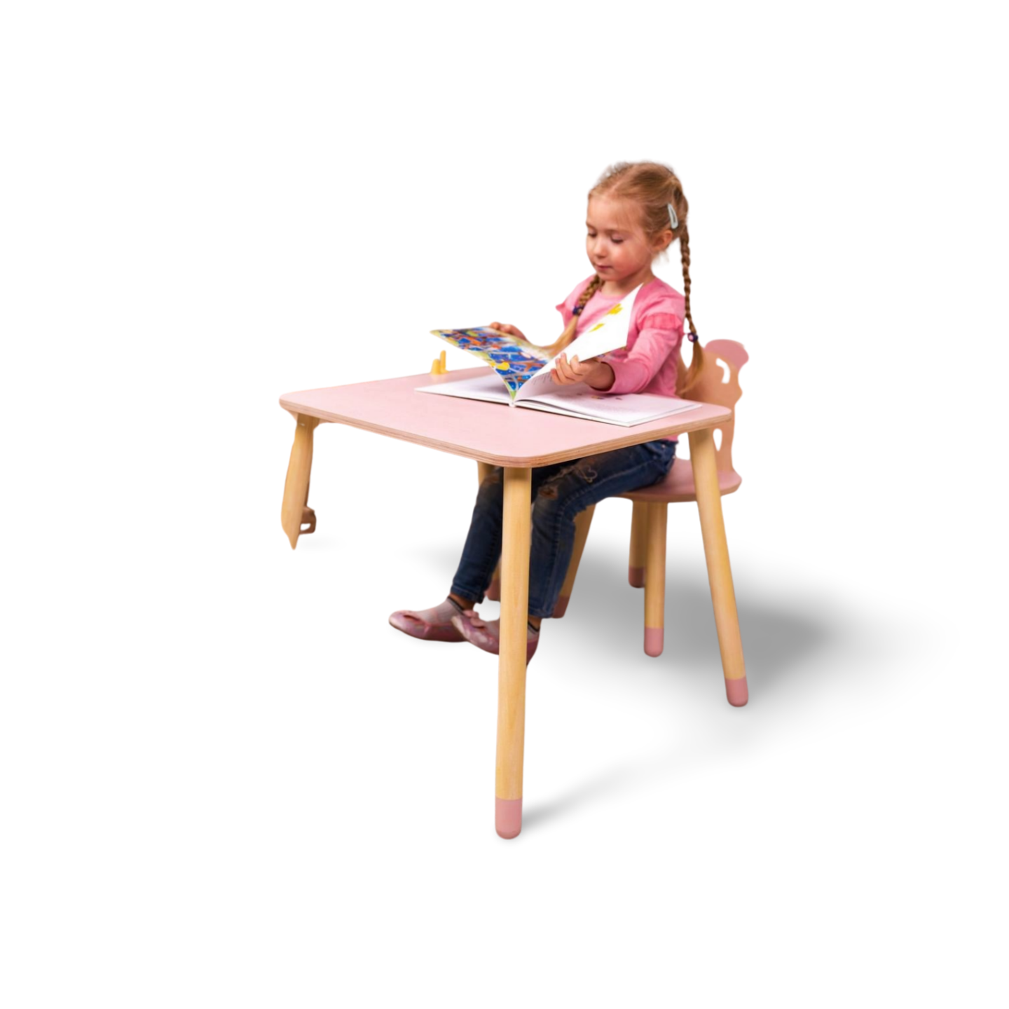 Bord og stol til barn med nuttet kaninøre-design, træ, pink