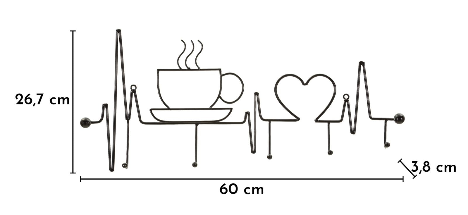 Tilføj et moderne og humoristisk twist til din indretning med BREAKFAST WALL HANGER i sort. Det minimalistiske design forestiller en dampende kaffekop, der elegant smelter sammen med en hjerteslagslinje – en kreativ reference til hyggelige og afslappede øjeblikke.