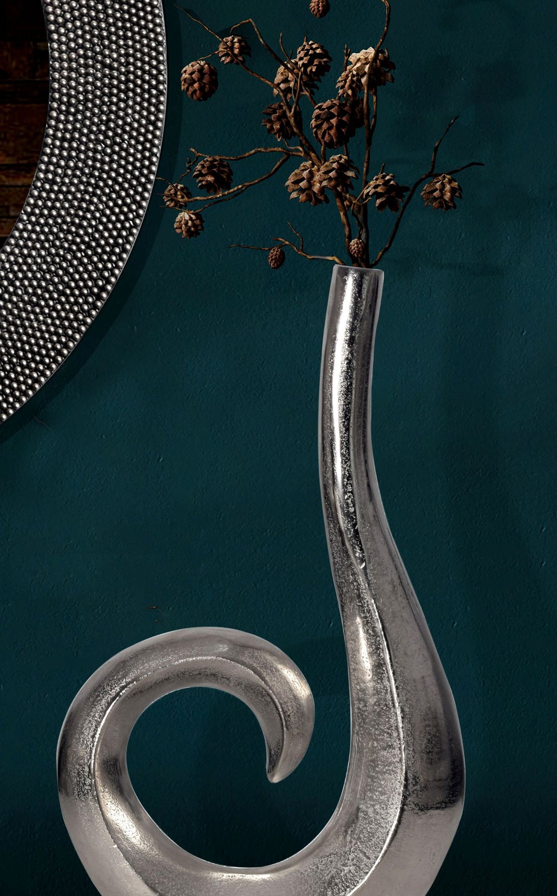 Dekorativ vase 47 cm aluminium sølv spiral blomstervase moderne lille, ekstravagant dekorativ vase til blomster, aluminium bordvase boligindretning borddekoration håndlavet