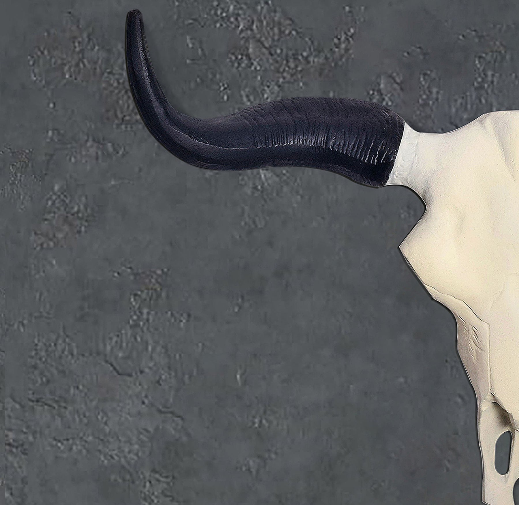 Dekorativt bøffelkraniegevir, hvidt, 55,5 cm, aluminiumsdesign, tyrehoved, moderne hornvægdekoration, vægskulptur med horn, metaljagttrofægevir, stor vægdekoration