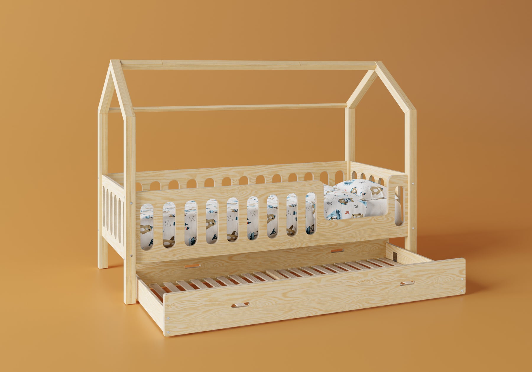 Skuffen kan bruges som en ekstra seng, en beholder til sengetøj eller legetøj